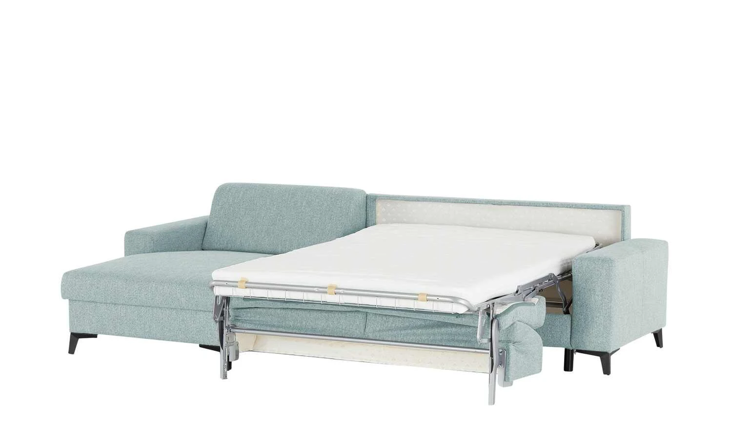 Schlicht und zeitlos präsentiert sich das Ecksofa Betty 2.0. Der strapazierfähige Bezug aus Flachgewebe umhüllt das gesamte Sofa: Sie können Betty 2.0 daher frei im Raum platzieren. Schwarze Metallfüße runden das Erscheinungsbild ab. Erstklassigen Sitz- und Liegekomfort bietet das Ecksofa durch seine Kaltschaumpolsterung und den Comfort-Lattenrost. Strecken Sie sich auf der Ottomane aus oder erweitern Sie das Sofa zum Schlafen. Mit nur wenigen Handgriffen wird Betty zur Schlafgelegenheit für Besuch. Die passende Bettwäsche können Sie problemlos im praktischen Bettkasten verstauen.