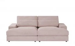 Das Big Sofa Canyon ist ein Eyecatcher im Vintage-Design. Es fällt durch seine vielen schönen Details auf. Die geschwungene Formgebung von Rückenlehne und Armlehnen und die Steppungen mit Zierknöpfen erinnern an den klassischen Chesterfield-Stil. Selbst die stabilen Massivholzfüße des Sofas sind dekorativ gearbeitet. Canyon ist mit einem Samtstoff bezogen – einschließlich der gesamten Rückseite. Der Bezug fühlt sich angenehm weich an und hat ein glänzendes Finish. Er bringt die Farbe wunderbar zur Geltung. Neben der Optik punktet das Big Sofa mit einem bequemen Sitzkomfort. Dafür sorgen die dicke Polsterung mit gut abfedernder Wellenunterfederung und die angenehme Sitztiefe.