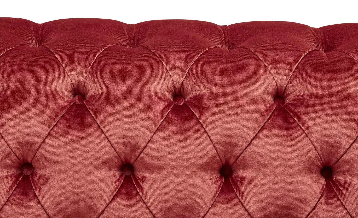 Das Big Sofa Canyon ist ein Eyecatcher im Vintage-Design. Es fällt durch seine vielen schönen Details auf. Die geschwungene Formgebung von Rückenlehne und Armlehnen und die Steppungen mit Zierknöpfen erinnern an den klassischen Chesterfield-Stil. Selbst die stabilen Massivholzfüße des Sofas sind dekorativ gearbeitet. Canyon ist mit einem Samtstoff bezogen – einschließlich der gesamten Rückseite. Der Bezug fühlt sich angenehm weich an und hat ein glänzendes Finish. Er bringt die Farbe wunderbar zur Geltung. Neben der Optik punktet das Big Sofa mit einem bequemen Sitzkomfort. Dafür sorgen die dicke Polsterung mit gut abfedernder Wellenunterfederung und die angenehme Sitztiefe.
