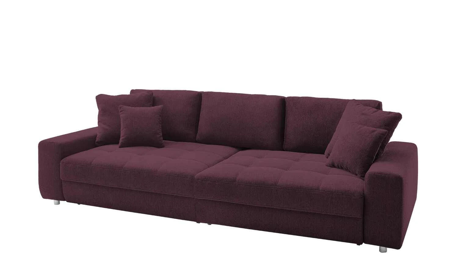Besonders viel Platz für Freunde und Familie bietet das Big Sofa Arissa de Luxe. Die hochwertige Boxspringpolsterung unter der gesteppten, 81 Zentimeter tiefen Sitzfläche und die Wellenunterfederung sorgen für langanhaltenden, hohen Komfort. Das gesamte Sofa ist mit einem strapazierfähigem Webstoff bezogen, ebenso wie die insgesamt sieben Kissen. Sie können Arissa de Luxe daher problemlos auch mittig im Raum platzieren. Runde Metallfüße in Chrom-Optik veredeln das Erscheinungsbild des Sofas.