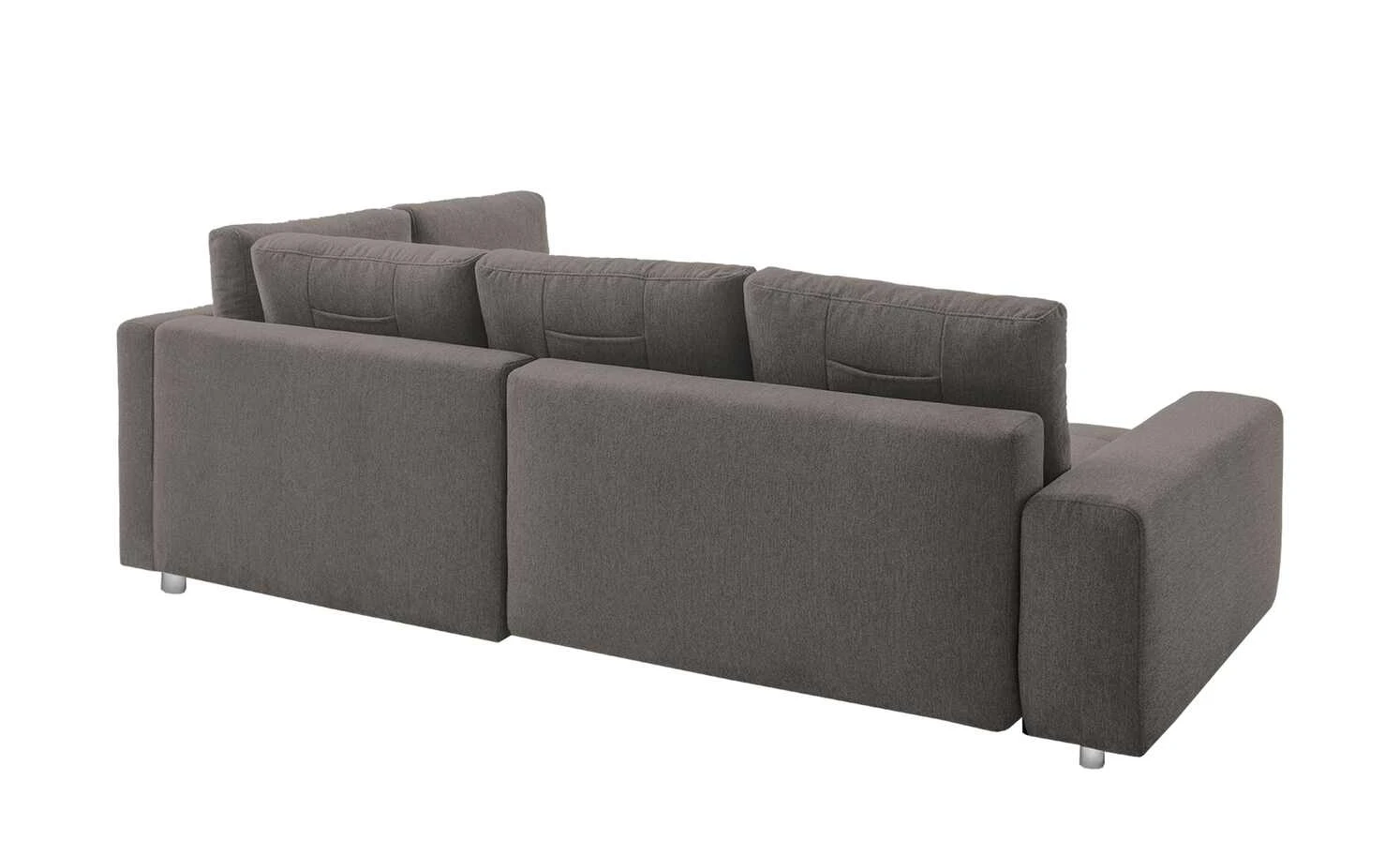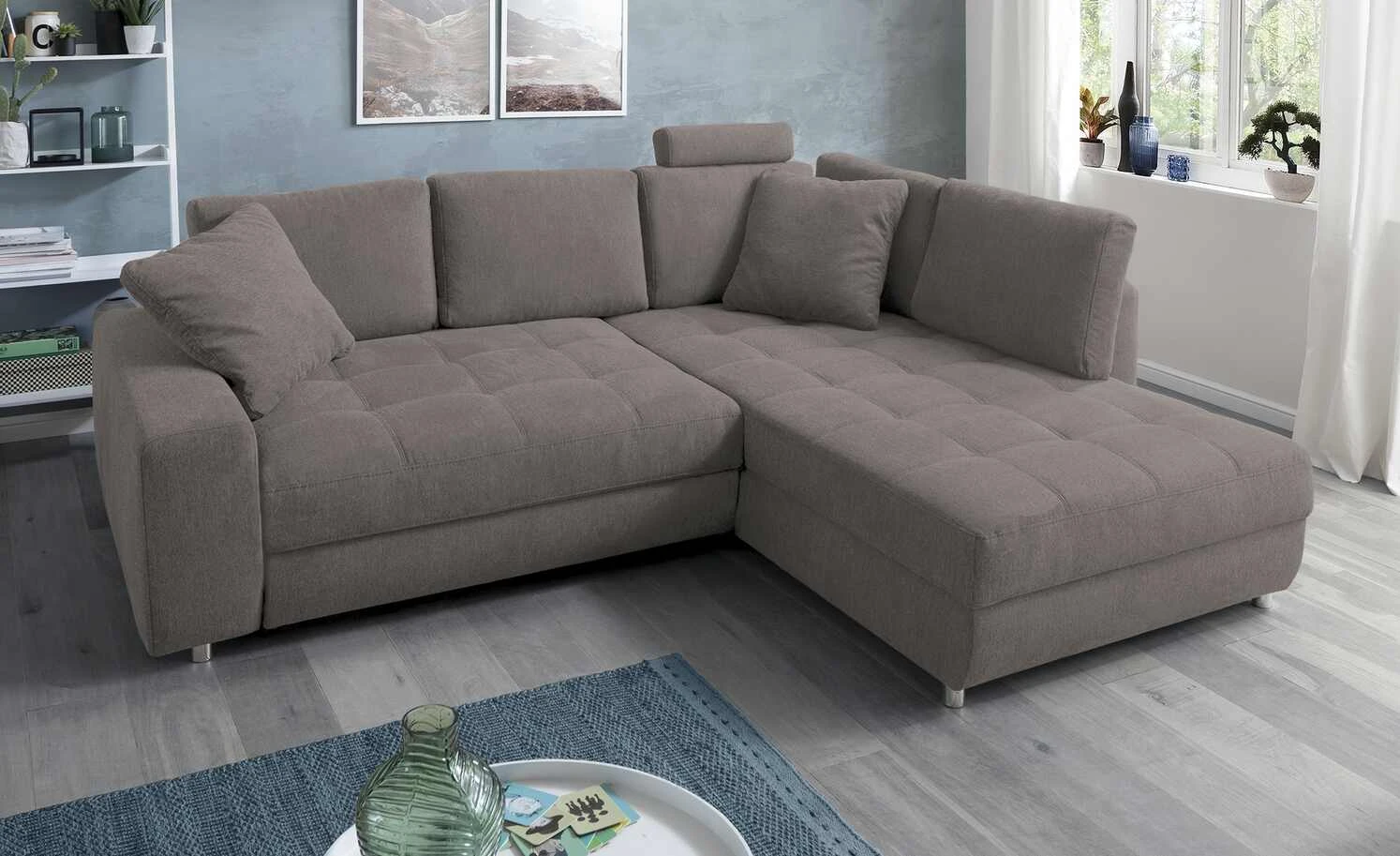 Das Sofa in L-Form ist komplett mit einem strapazierfähigen Webstoff bezogen und kann problemlos auch frei im Raum stehen. Arissa de Luxe gibt es in verschiedenen Farbvarianten und passt dadurch in nahezu jedes Raumkonzept. Übrigens: Zu Arissa de Luxe sind zusätzliche Kopfstützen erhältlich. Diese können ganz einfach in die Laschen der Rückenkissen gesteckt werden.
