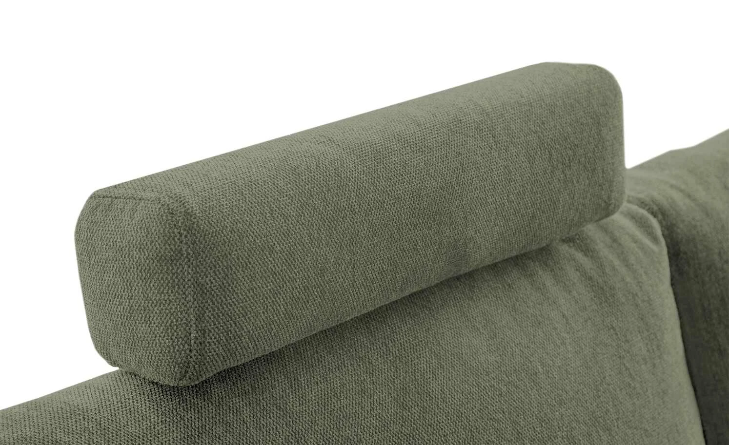 Das Sofa in L-Form ist komplett mit einem strapazierfähigen Webstoff bezogen und kann problemlos auch frei im Raum stehen. Arissa de Luxe gibt es in verschiedenen Farbvarianten und passt dadurch in nahezu jedes Raumkonzept. Übrigens: Zu Arissa de Luxe sind zusätzliche Kopfstützen erhältlich. Diese können ganz einfach in die Laschen der Rückenkissen gesteckt werden.