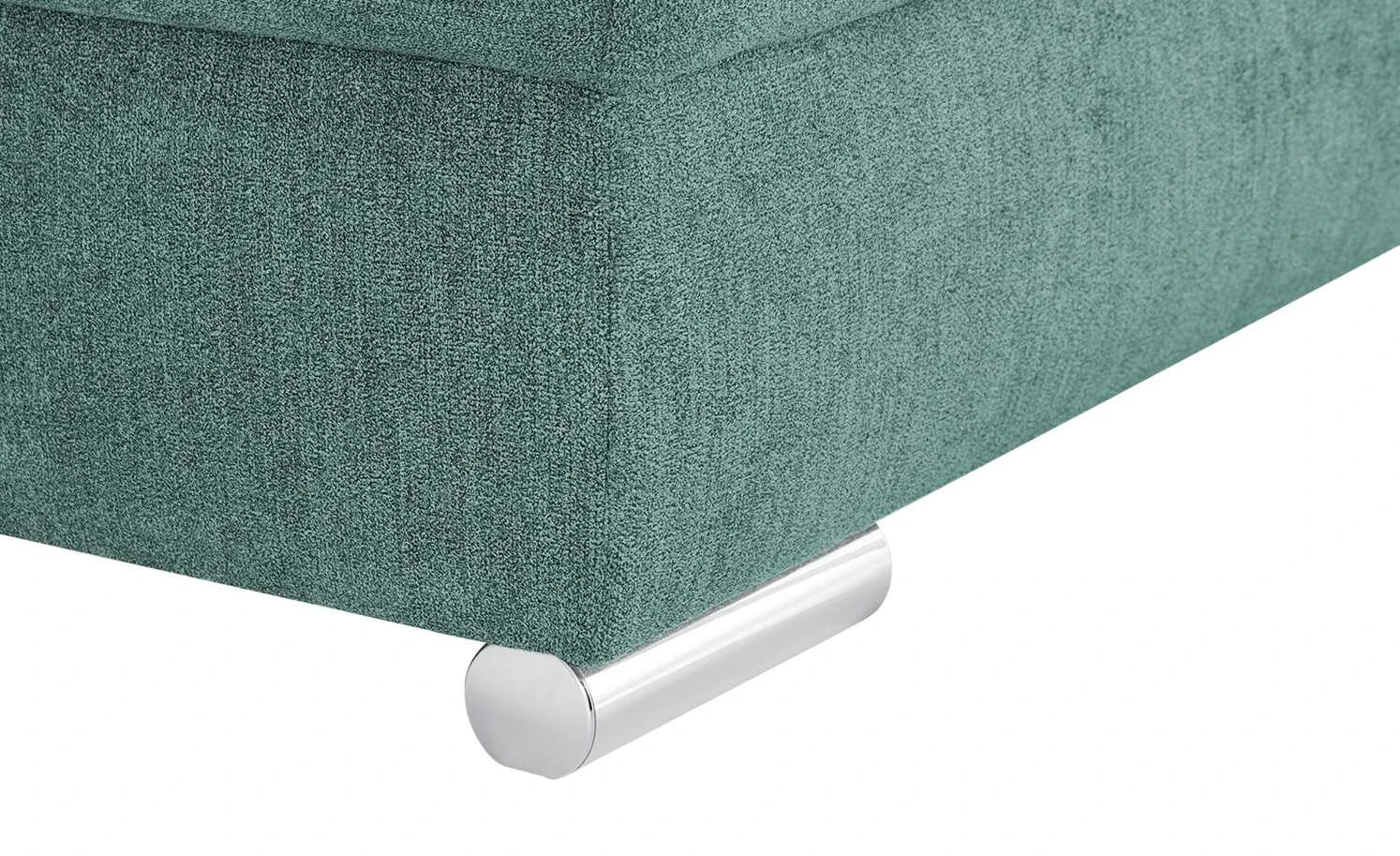 Das Ecksofa Soumia fällt durch die quadratische Steppung seiner Sitzfläche sofort ins Auge. Die Schaumstoffpolsterung und die Wellenunterfederung sorgen für langanhaltenden Sitz- und Liegekomfort. Soumia besitzt eine Schlaffunktion und kann mit wenigen Handgriffen zum Gästebett umfunktioniert werden. Die Bettwäsche für den Besuch können Sie im praktischen Bettkasten unter der Sitzfläche verstauen. Das kompakte Sofa in L-Form ist komplett bezogen und kann auch frei im Raum stehen. Die chromfarbigen Füße passen zum edlen und modernen Erscheinungsbild von Soumia.