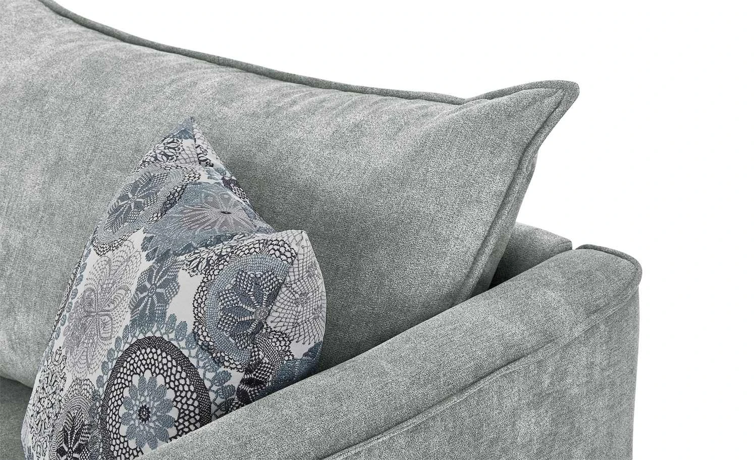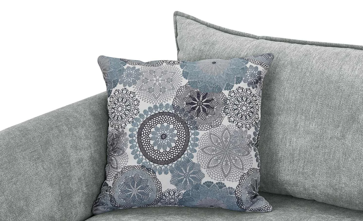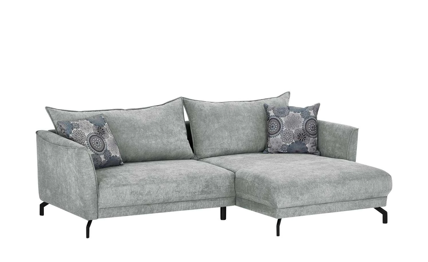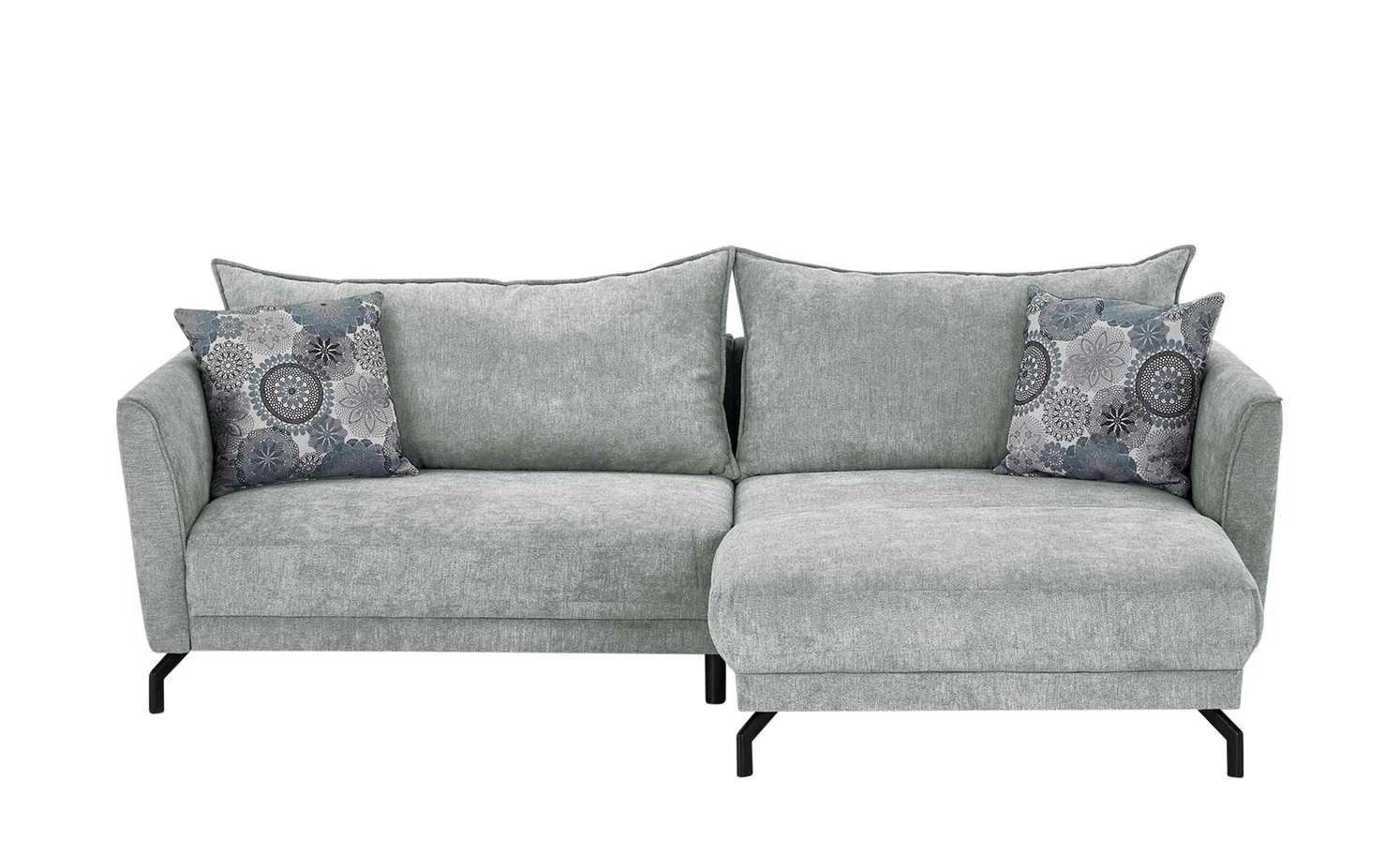 Ein urbaner und gleichzeitig gemütlicher Look macht das Ecksofa Yolanda zum optischen Highlight des Wohnzimmers. Die moderne Linienführung wird durch Winkelfüße aus schwarzem Metall ergänzt. Die beiden Zierkissen mit Mandala-Muster setzen punktuelle Akzente; sie sind im Lieferumfang enthalten. Eine hochwertige Polsterung aus Polyätherschaum sorgt für Sitzkomfort; sie wird durch eine Nosag-Wellenunterfederung unterstützt und noch besser abgefedert. Dank der extra breiten Récamiere können Sie gerne auch mal die Beine hochlegen und so noch besser entspannen. Die Couch ist rundherum mit Mikrofaser bezogen – einschließlich der gesamten Rückseite. Das gibt Ihnen die Möglichkeit Yolanda auch zentral im Raum zu platzieren.