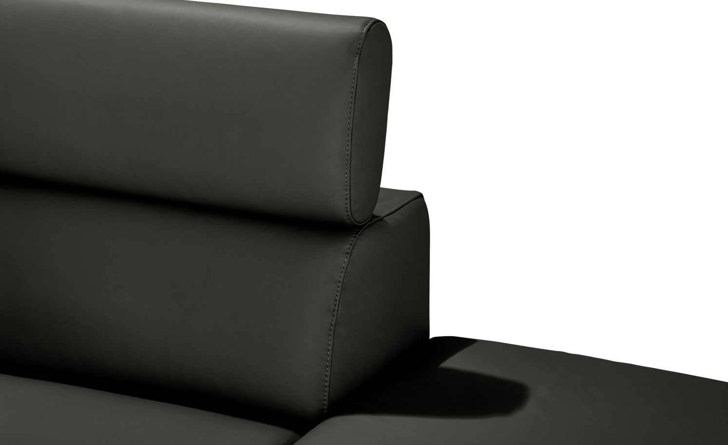 Das Ecksofa Camilla überzeugt mit erstklassiger Qualität, Optik und Komfort. Für letzteren sorgt die hochwertige Polsterung mit zusätzlicher Wellenunterfederung unterhalb der Sitze. Durch die angenehme Sitztiefe und die komfortabel geformte Rückenlehne können Sie es sich so richtig gemütlich machen. Alle fünf Kopfteile sind weich gepolstert und in der Position verstellbar. Dadurch haben Sie die Möglichkeit, den Kopf bei Bedarf anzulehnen. Camilla ist rundherum mit Echtleder bezogen. Es ist von anschmiegsamer, hochwertiger Qualität und hat eine schöne natürliche Narbung. Da auch die Rückseite damit bezogen ist, lässt sich das Sofa mittig im Wohnraum platzieren.