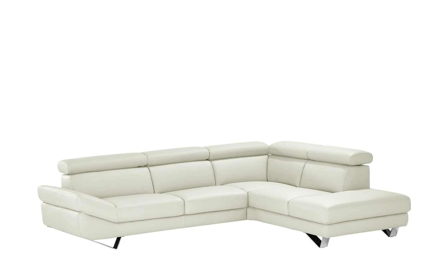 Das Ecksofa Camilla überzeugt mit erstklassiger Qualität, Optik und Komfort. Für letzteren sorgt die hochwertige Polsterung mit zusätzlicher Wellenunterfederung unterhalb der Sitze. Durch die angenehme Sitztiefe und die komfortabel geformte Rückenlehne können Sie es sich so richtig gemütlich machen. Alle fünf Kopfteile sind weich gepolstert und in der Position verstellbar. Dadurch haben Sie die Möglichkeit, den Kopf bei Bedarf anzulehnen. Camilla ist rundherum mit Echtleder bezogen. Es ist von anschmiegsamer, hochwertiger Qualität und hat eine schöne natürliche Narbung. Da auch die Rückseite damit bezogen ist, lässt sich das Sofa mittig im Wohnraum platzieren.