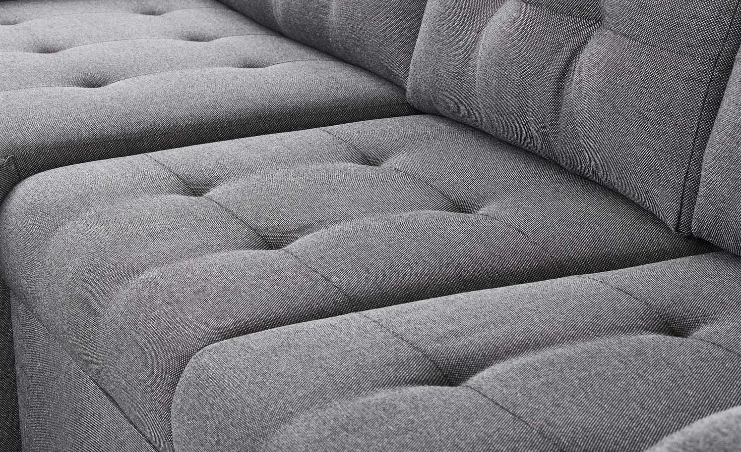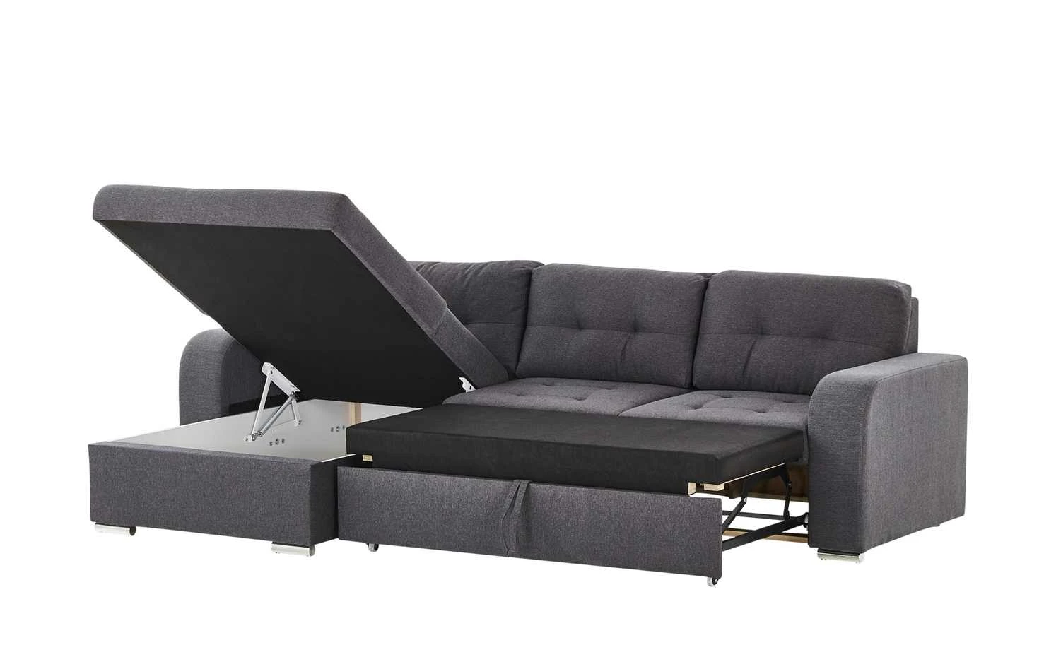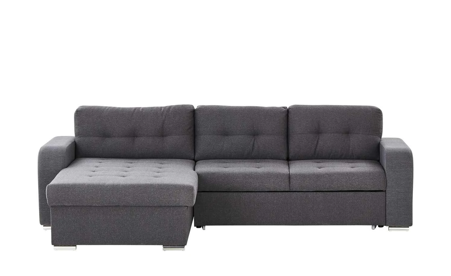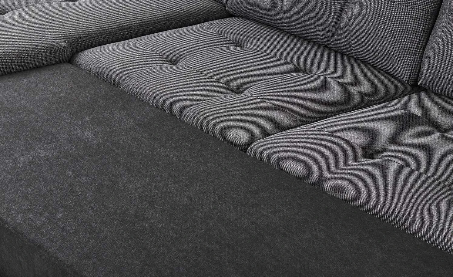 Das Ecksofa Carmen ist L-förmig designt und bietet daher viel Platz zum Hochlegen der Beine. Für den Komfort dabei sorgen der Federkern und die zusätzliche Schaumstoffpolsterung. Carmen ist zudem mit einer Schlaffunktion ausgestattet, bei der Sie die Liegefläche einfach nur nach vorne ausziehen brauchen. Unterhalb der Ottomane befindet sich ein geräumiger Bettkasten. Die Couch ist rundherum mit einem melierten Flachgewebe bezogen – und kann so auch mittig im Raum stehen. Sitzfläche und Rückenkissen sind dekorativ abgesteppt.