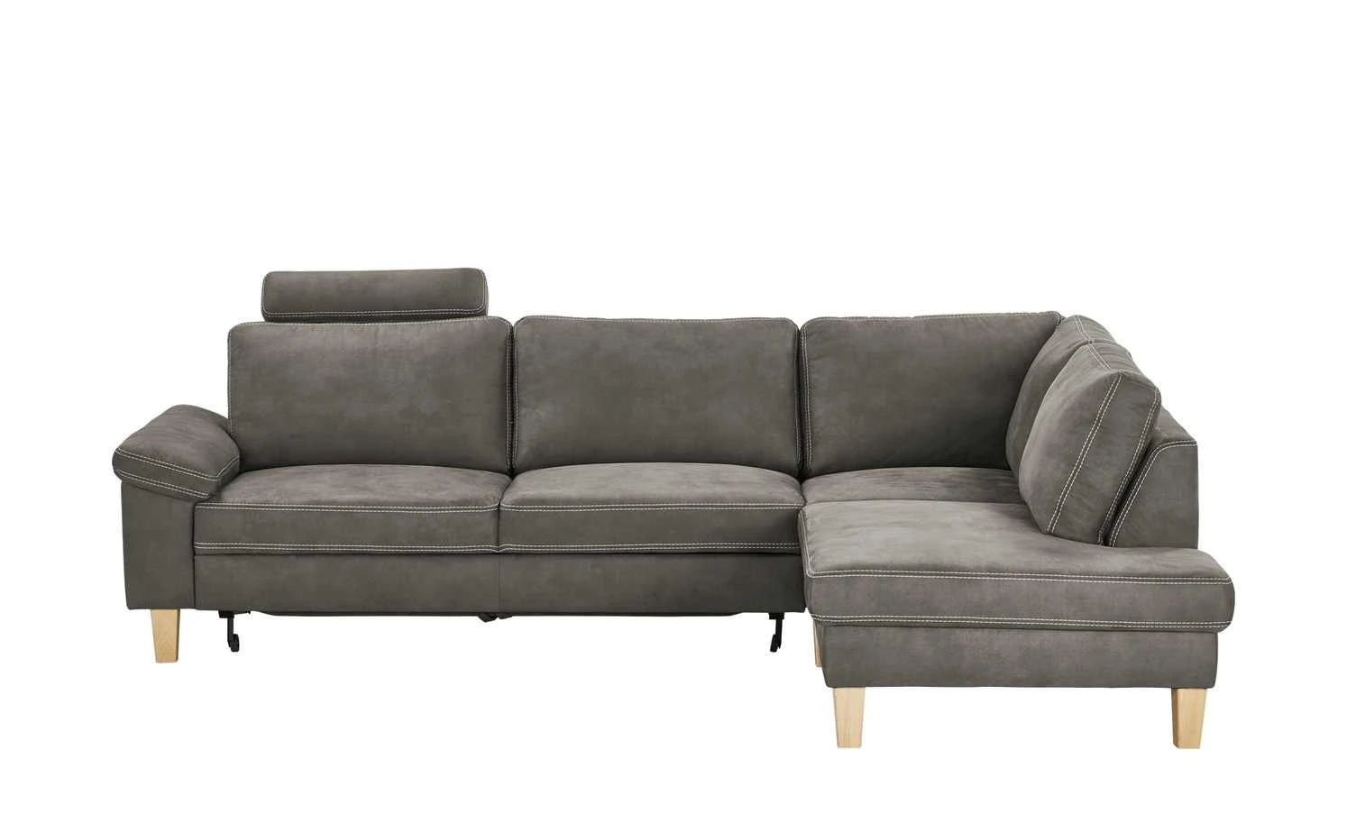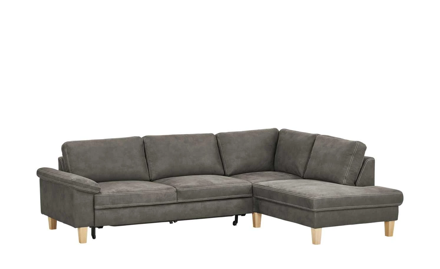 Nach einem anstrengenden Arbeitstag haben Sie Gemütlichkeit verdient. Einen ganz gemütlichen Sitz- und Liegekomfort bietet Ihnen das Ecksofa Coline. Dafür sorgt der langlebige Federkern im Inneren der Couch. Coline ist mit einer soften Mikrofaser in Anthrazit bezogen. Der weiche Stoff befindet sich auch auf der gesamten Rückseite des Sofas. So ist diese optisch genauso ansprechend, wie der Rest von Coline. Helle Ziernähte setzten Kontrastakzente. Für einen natürlichen Scandi-Touch sorgen die Füße aus massiver Buche Natur. Genial: Sie können Coline zum Gästebett ausziehen.