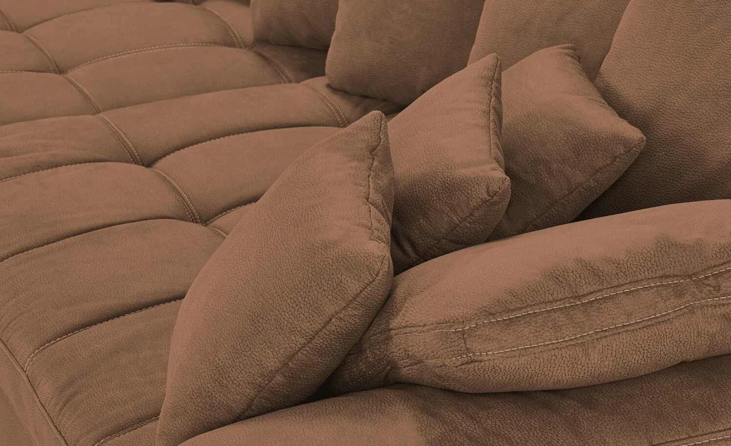 Ein gemütlicher Abend mit einem Herzensmenschen kann richtig entspannend sein. Das Ecksofa Farina ist die perfekte Grundlage dafür. Es ist bequem und hat mit 104 Zentimetern die ideale Sitztiefe um darauf zu relaxen. Die sechs Rückenkissen, zwei mittelgroßen und vier kleinen Kissen können Sie nach Herzenslust platzieren, um es sich noch behaglich-komfortabler zu machen. Sofa und Kissen sind mit softer Mikrofaser bezogen. Sie fühlt sich richtig angenehm an. Da Farina auch auf der Rückseite mit dem gleichen Stoff bezogen ist wie der Rest des Sofas, ergibt sich ein komplett einheitliches Design. Ein Eyecatcher ist die karoförmige Steppung im Sitzbereich.