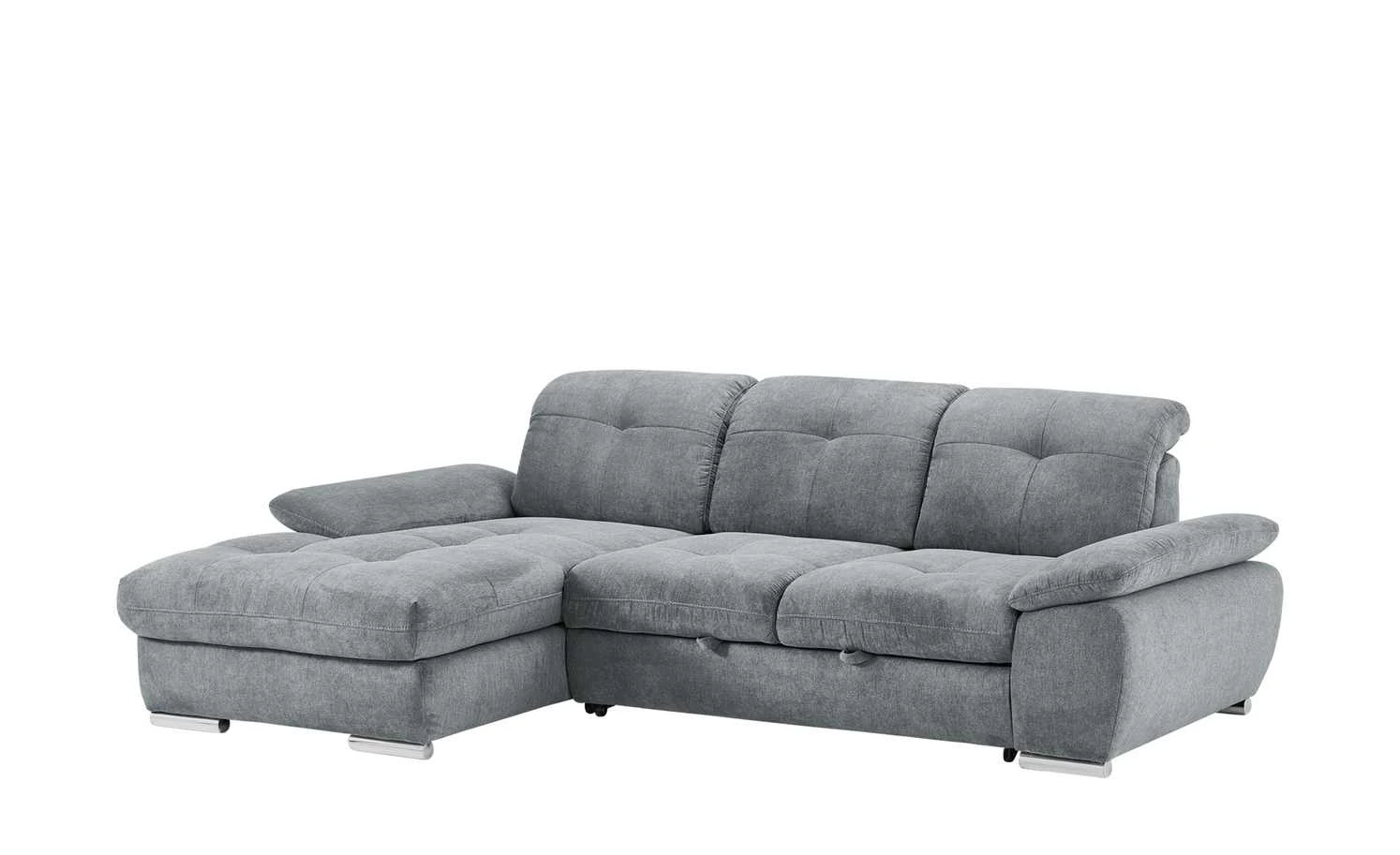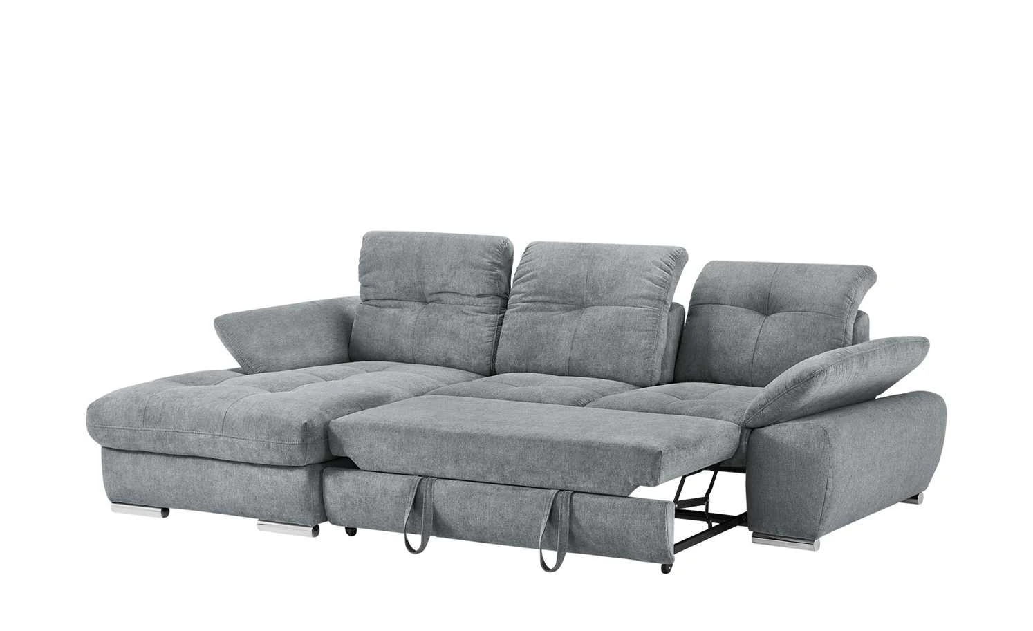Auf dem Ecksofa Gladys können Sie es sich individuell bequem machen. Alle drei Sitze haben eine manuell verstellbare Sitztiefe. Sie ist zwischen 60 und 85 bzw. bei der Récamiere zwischen 136 und 160 cm variabel die drei Kopfteile und die beiden Armlehnen können Sie ebenfalls in der Position verstellen. Durch die Schlaffunktion kann Gladys auch zum Gästebett ausgezogen werden. In der Récamiere befindet sich ein praktischer Bettkasten in XL-Größe. Die Couch ist komfortabel gepolstert und im Sitzbereich zusätzlich mit einer Nosag-Wellenunterfederung ausgestattet. Ein Mikrofaserbezug umspannt das Sofa komplett, einschließlich der gesamten Rückseite.