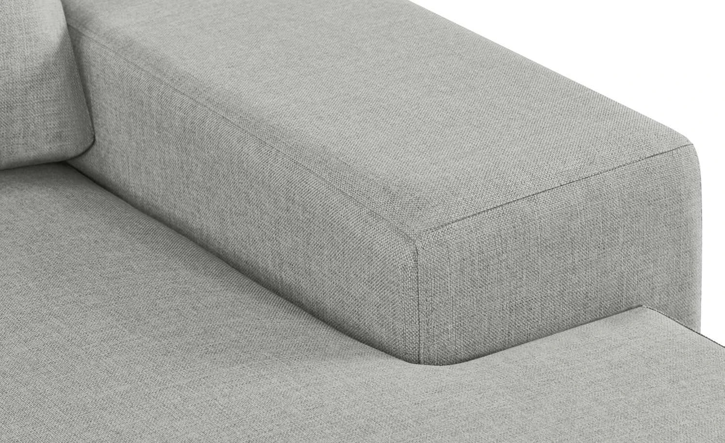 Schlichte Eleganz strahlt das Ecksofa Renée aus. Renée ist ein Dreisitzer mit Ottomane. Das erlaubt es Ihnen, auch mal die Beine gemütlich hochzulegen. Die Couch wird komplett von einem dezent melierten Webstoff umhüllt. Deshalb können Sie das Sofa sogar mittig im Raum platzieren. Unterhalb des Stoffes befindet sich eine Polsterung mit Schaumstoff und Wellenunterfederung.