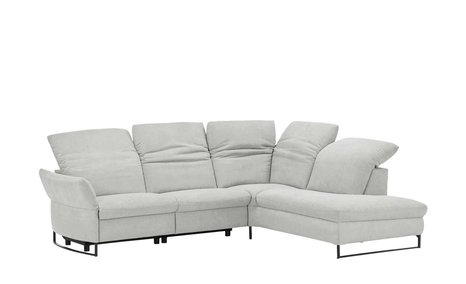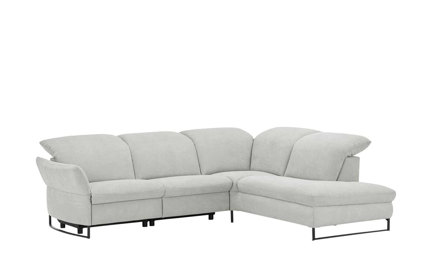 Das Ecksofa Viviana ist ein wahres Highlight und glänzt zudem mit einem äußerst hohen Gemütlichkeitsfaktor. Dank der Armteilverstellung wird das Sofa der Marke Gallery M zu einer absoluten Oase der Entspannung. Es lädt aufgrund der Wellenfederkerne sowie der Polsterung aus PUR-Schaum zum Entspannen ein. Ein Bezug aus Mikrofaser gibt der Sitz- und Rückenfläche herausragenden Sitzkomfort. Der Rücken des Sofas ist echt bezogen, sodass es auch mitten im Raum platziert werden kann. Das Modell Viviana steht fest auf hübschen schwarzen Füßen aus Metall. Das Sofa besitzt eine Ottomane auf der rechten Seite, hat eine Sitzhöhe von 47 cm und lädt mit der Sitztiefe von 57 cm zum Entspannen ein. Dieses Sofa gewährt Ihnen Raum zum Schmökern, Fernsehen und Die-Seele-baumeln-lassen.