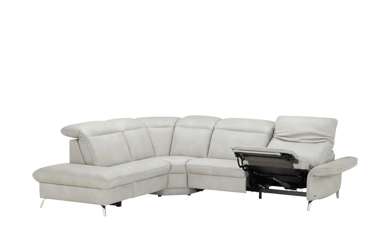 Erleben Sie mit Freunden und Familie Komfort ganz neu: Auf diesem Ecksofa der Marke himolla. Die Sitzflächen sind hochwertig gepolstert und laden zum gemütlichen Beisammensitzen ein. Die Kopfteile lassen sich mit nur einem Handgriff hochklappen, ebenso lässt sich auch die Armlehne hoch- und umklappen. Der äußere Sitz verfügt über eine elektrische Relaxfunktion, bei der Sie die Kopfstütze und die Sitzposition sogar auf Knopfdruck einstellen können. Ein softer Echtlederbezug umspannt das gesamte Sofa, sodass Sie das Ecksofa auch mittig in den Raum stellen können. Das Ecksofa bietet außerdem praktischen Stauraum in der Ottomane. Hier können Sie zum Beispiel Ihre Tagesdecken und Dekokissen verstauen. Polster gefertigt im bayrischen Taufkirchen: Von Menschen für Menschen. Die hochwertigen Funktionsmöbel der Marke himolla besitzen durchdachte Verstellfunktionen und begleiten Sie ein ganzes Möbelleben lang.