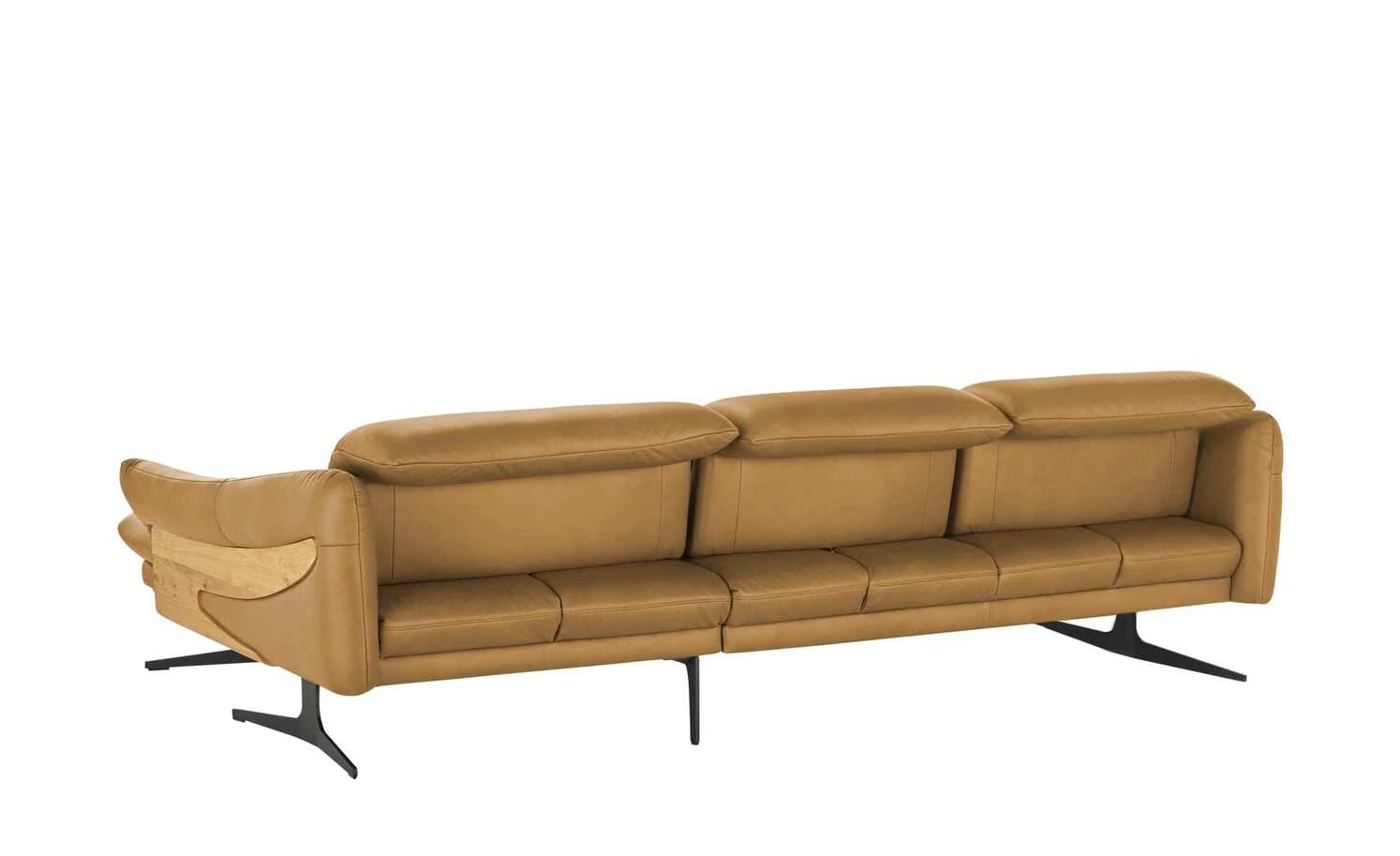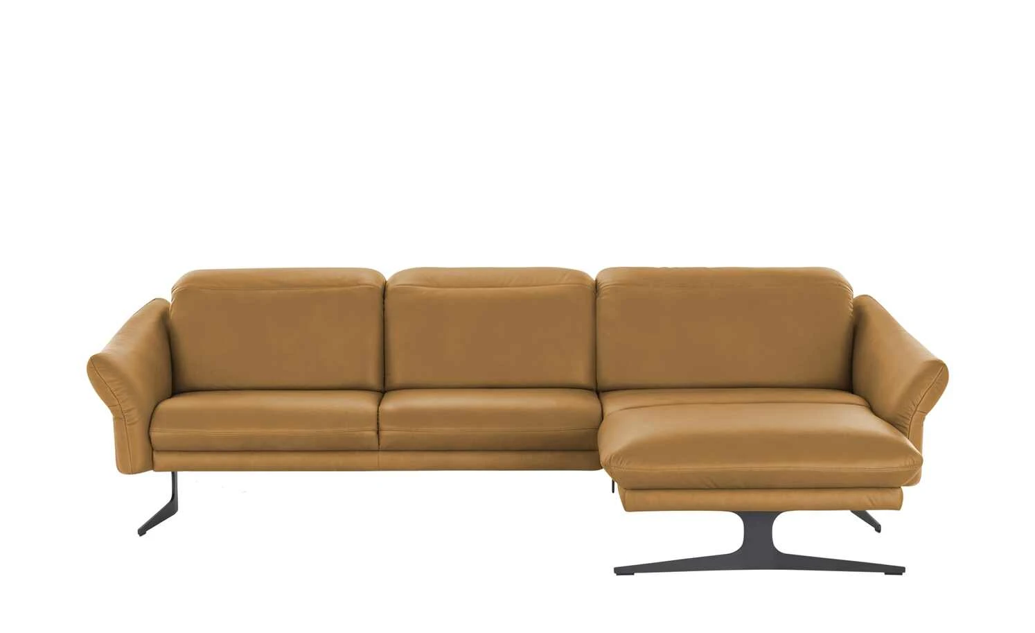 Filigrane Metall-Kufenfüße geben diesem Sofa eine schwerelose Optik. Die dunklen Kufenfüße aus gebürstetem Metall sind robust und tragen das hochwertige Echtledersofa. Attraktive Massivholz-Applikationen an den Außenseiten der Armlehnen verleihen dem Ecksofa eine natürliche Note. Das Wildeichen-Holz wurde geölt und erhält dadurch einen warmen Ton. Lehnen Sie sich zurück und stellen Sie die Sitztiefe ganz nach Ihren Wünschen ein. Auch die Kopfteile können Sie im Handumdrehen verstellen. So passt sich dieses Sofa gekonnt Ihren Komfort-Bedürfnissen an. Polster gefertigt im bayrischen Taufkirchen: Von Menschen für Menschen. Die hochwertigen Funktionsmöbel der Marke himolla besitzen durchdachte Verstellfunktionen und begleiten Sie ein ganzes Möbelleben lang.