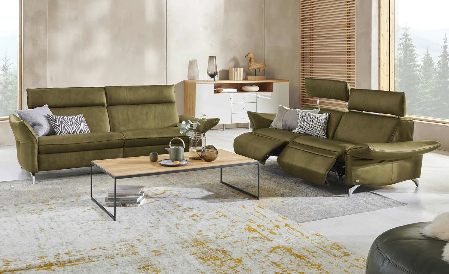 Bei diesem Sofa verbinden sich Komfort, Design und Qualität auf einzigartige Weise. Die langlebige Polsterung wird von einem hochwertigen Echtlederbezug umspannt, der mit dekorativen Kedernähten akzentuiert wird. Der geradlinige Designentwurf wird mit modernen Highlights, wie den edelstahlfarbenen Metallfüßen, kombiniert. Übrigens: Sie können die beiden Armlehnen mit nur einem Handgriff um- oder hochklappen. Polster gefertigt im bayrischen Taufkirchen: Von Menschen für Menschen. Die hochwertigen Funktionsmöbel der Marke himolla besitzen durchdachte Verstellfunktionen und begleiten Sie ein ganzes Möbelleben lang.