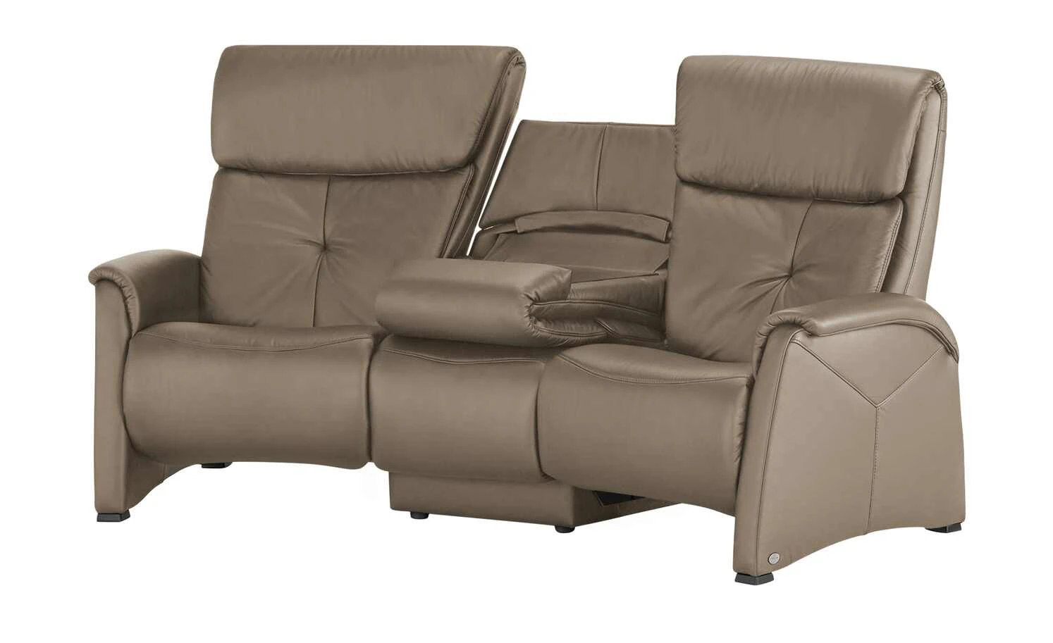 Lassen Sie den Tag ausklingen und genießen Sie entspannte Stunden vor dem Fernseher. Dieses Trapezsofa kombiniert komfortable, dicke Polsterbereiche mit einer integrierten Relaxfunktion. Die beiden äußeren Sitze lassen sich mit wenigen Handgriffen in Relaxposition stellen: Unabhängig voneinander. Klappen Sie das Mittelteil kinderleicht um, damit Sie einen praktischen Beistelltisch erhalten. Hier können Sie Getränke, Snacks und Co. ablegen. Ein edler Echtlederbezug mit dekorativen Nähten umspannt das gesamte Sofa. Absteppungen betonen die dicken Polsterbereiche und geben dem Markensofa eine moderne Note. Übrigens: Das Trapezsofa 4978 kann mit weiteren Polstermöbeln der gleichen Serie zu einer attraktiven Sitzgruppe kombiniert werden.