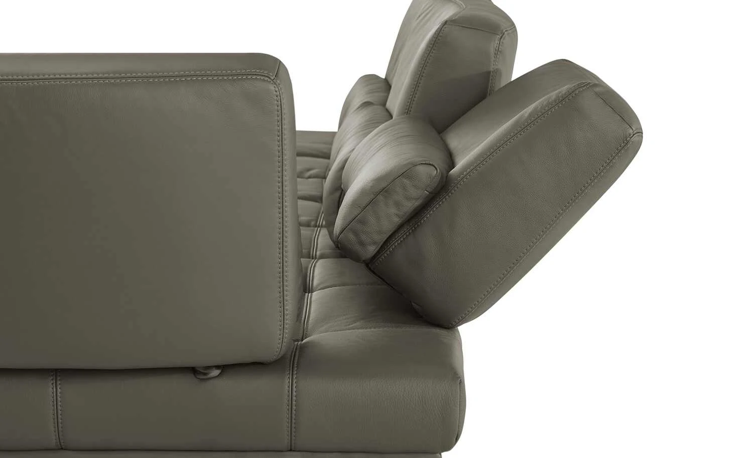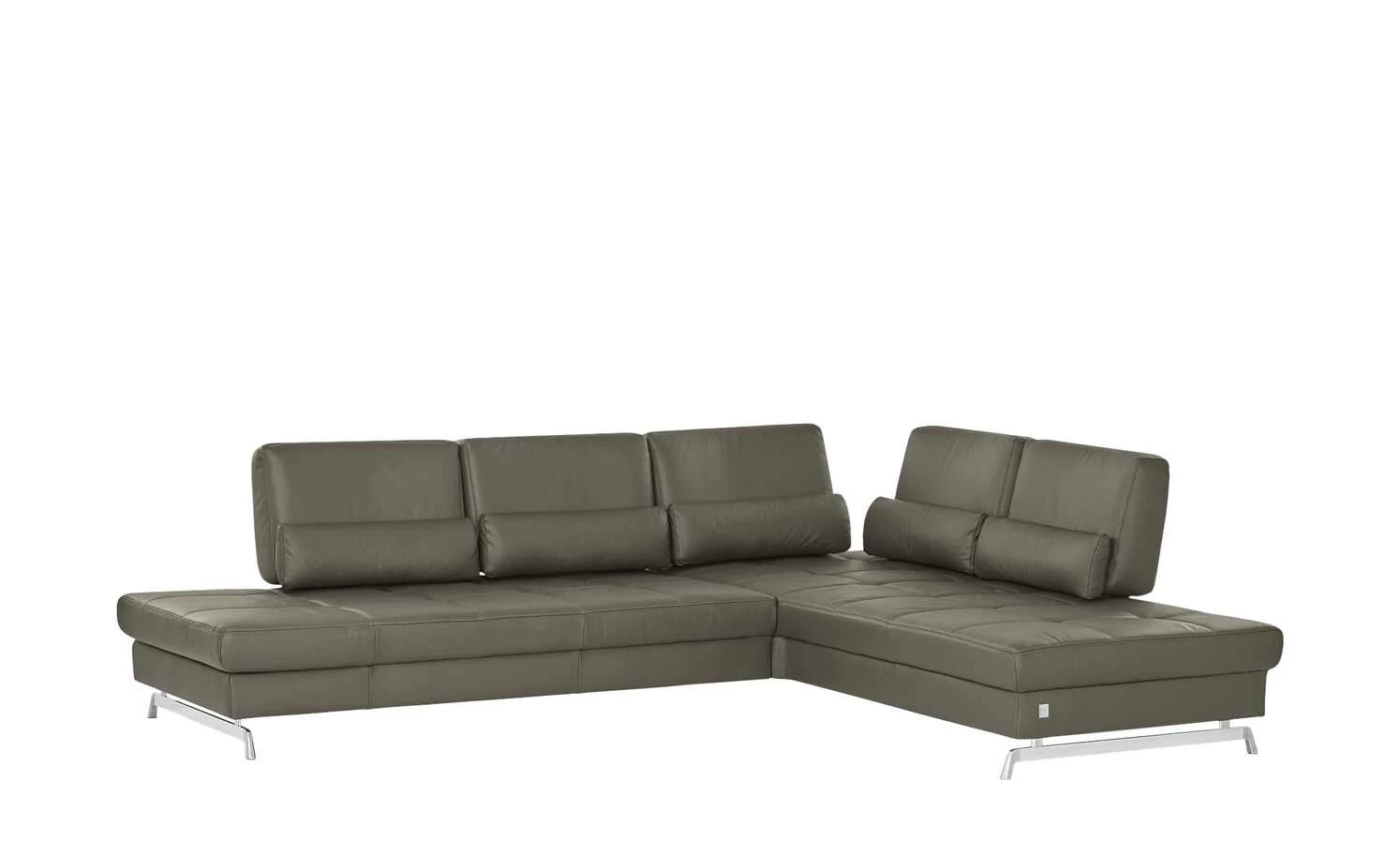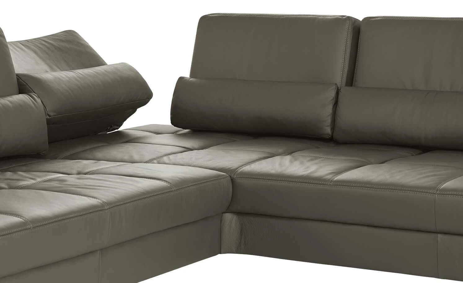 Ein echtes Designerstück ist das Ecksofa der Marke Joop!. Das sanft schimmernde Echtleder und die gesteppte Sitzfläche sind in jedem Raum ein Eyecatcher. Die Metall-Kufenfüße in Chrom-Optik veredeln das Gesamterscheinungsbild. Die markanten Rückenlehnen verleihen dem Ecksofa außerdem einen modernen Touch. Zwei Rückenlehnen an der Ecke lassen sich verstellen und auch die Armlehnen können Sie je nach Bedarf hochklappen. Die hochwertige Kaltschaumpolsterung sorgt für langanhaltenden Komfort.