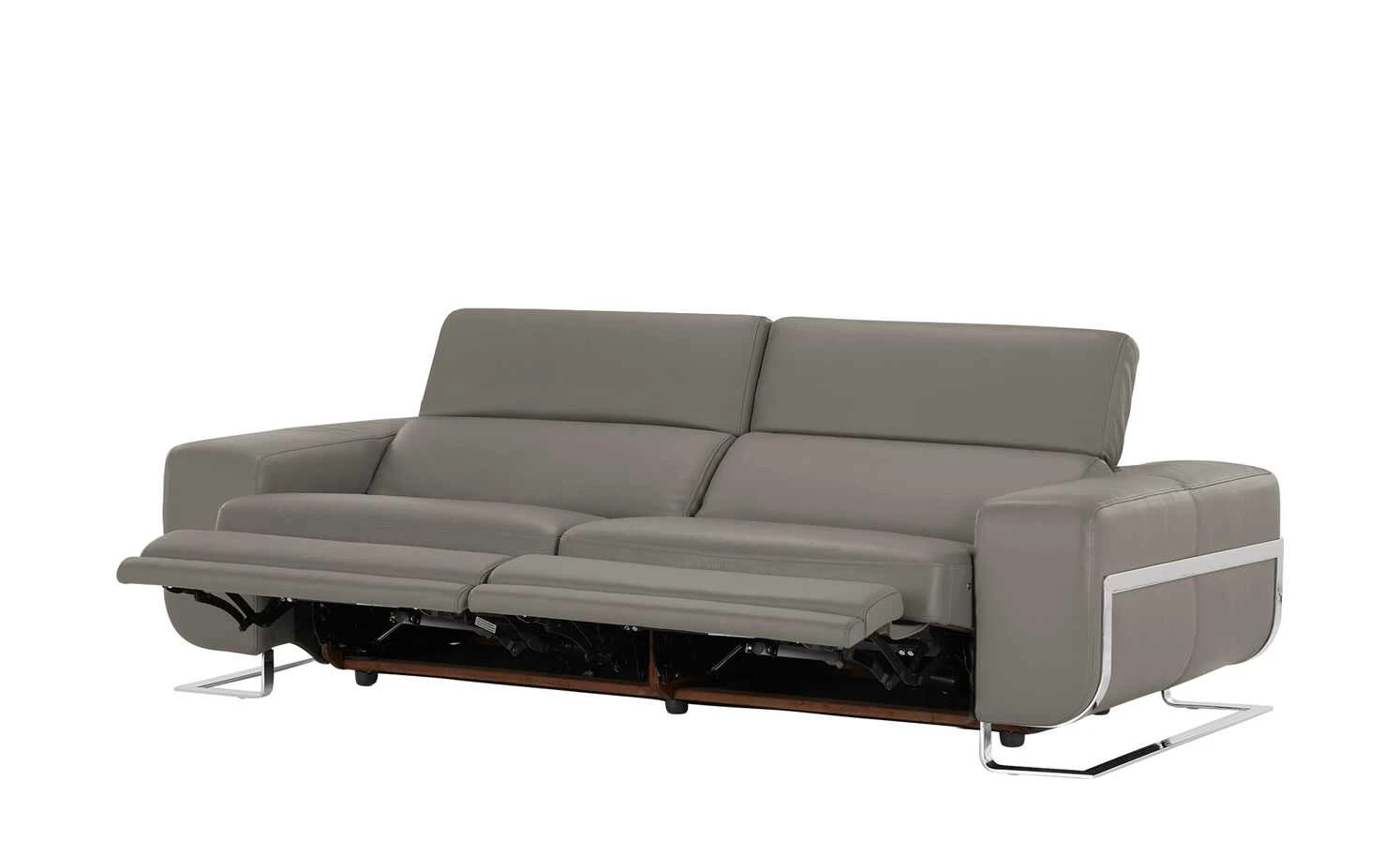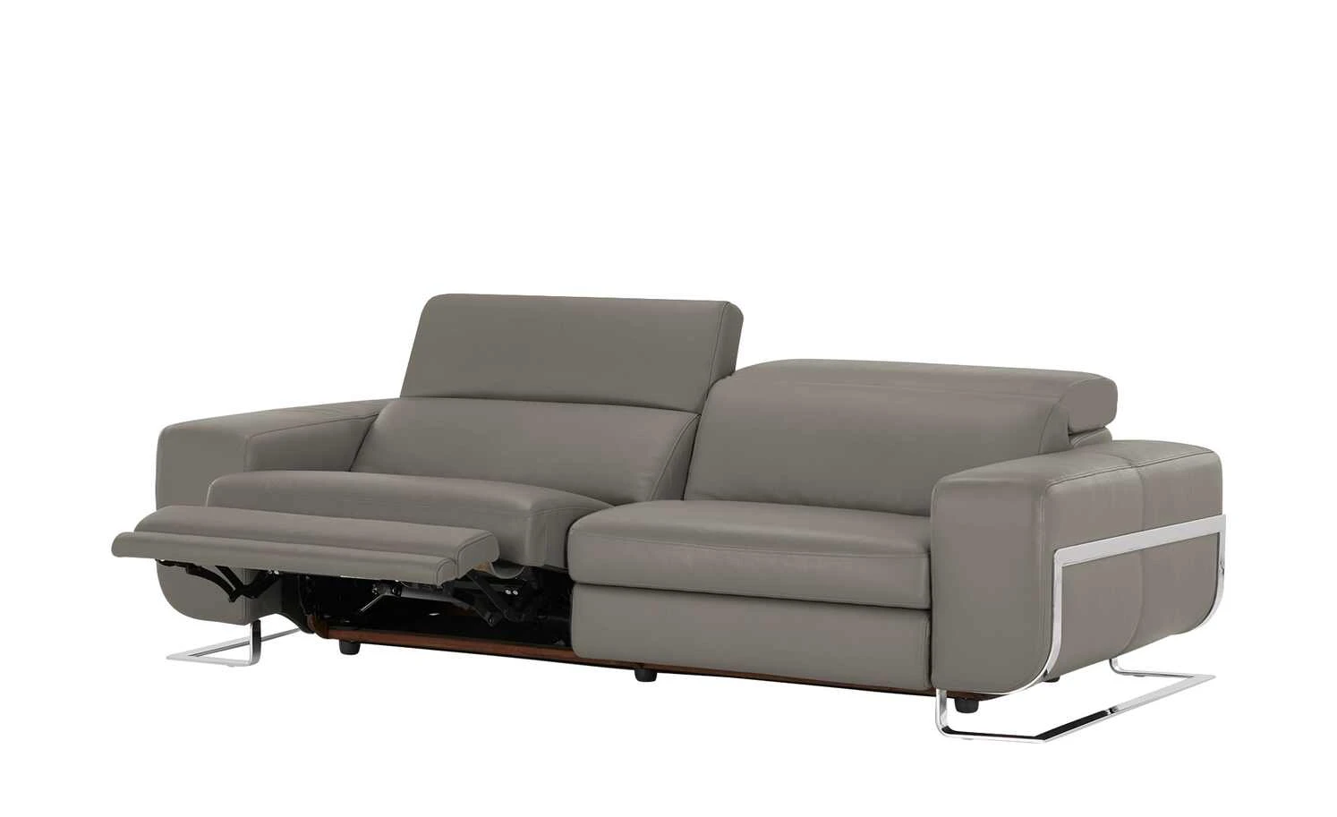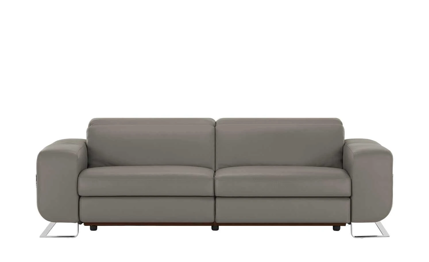 Das Ledersofa sorgt für ein hohes Maß an Bequemlichkeit in jedem Zuhause. Aufgrund der Kopfteilverstellung ist das Sofa extrem gemütlich. Komfort und Qualität vereinen sich in diesem Sofa der Marke JOOP gekonnt. Das Sofa lädt aufgrund der Wellenfederkerne sowie der Polsterung aus Kaltschaum zum Wohlfühlen ein. Auf der mit Leder bezogenen Sitz- und Rückenfläche sitzen Sie äußerst gemütlich. Das Sofa verfügt über einen echt bezogenen Rücken, sodass es ohne Probleme mitten im Raum aufgestellt werden kann. Die chromfarbenen Füße aus Metall ergänzen das Sofa stilsicher. Das Sofa wird dank der Sitztiefe von 57 cm zu einer wahren Oase der Entspannung, nimmt insgesamt 74 × 238 cm ein und hat eine Sitzhöhe von 46 cm. Das Sofa verspricht behagliches Wohnen mit Stil und Ruhe.