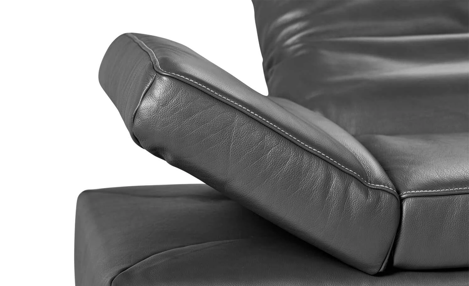 Großzügige Flächen und edles, kubisches Design finden sich in der Design-Couch Raoul. Funktionalität, Komfort und Design gehen hier Hand in Hand. Die extra breiten Kissen und das zeitlose Plateau sind komplett mit Echtleder bezogen. Eine dekorative Kontrastnaht veredelt das Erscheinungsbild gekonnt. Raoul bietet kompromisslosen Komfort. Verstellen Sie ganz einfach die Rückenlehnen und klappen Sie die Armlehne kinderleicht um. Wie für KOINOR-Markenmöbel üblich, sind alle Griffe und Knöpfe dezent ins Sofa integriert, sodass der edle, moderne Look nicht gestört wird. Dezente, flache Füße in Edelstahl-Optik runden das Erscheinungsbild der Design-Couch gekonnt ab.