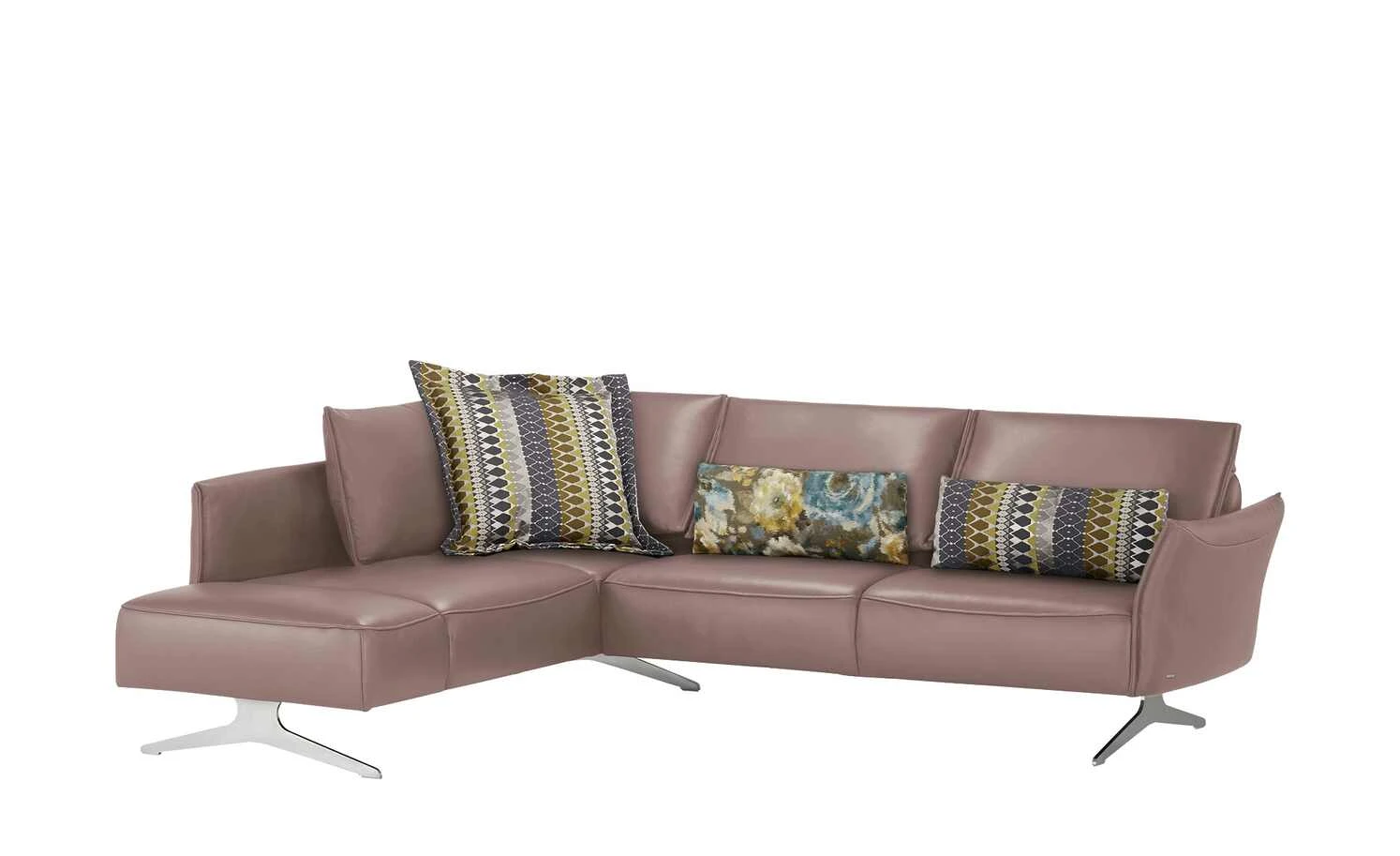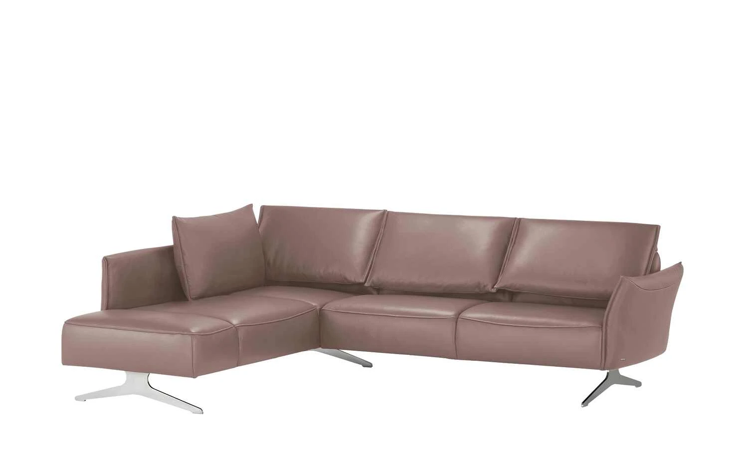 Das Ecksofa Vineto verbindet einzigartige Komfortfunktionen mit einem modernen, schwerelosen Design. Die edelstahlfarbenen, filigranen Metall-Schwertkufen tragen die komfortablen Sitzpolster zuverlässig und mühelos. Nehmen Sie Platz und klappen Sie die Rückenteile separat voneinander hoch, um sich noch besser anzulehnen. Auch die Armlehne lässt sich mit einem Handgriff umklappen. Ein hochwertiger Echtlederbezug umspannt das gesamte Sofa, sodass Sie Vineto frei im Raum platzieren können. Unser Tipp für noch mehr Wohnkomfort: Dekorieren Sie das Ecksofa Vineto mit den gleichnamigen Rückenkissen, die Sie separat im Shop erwerben können. Unikate gefertigt in Bayern: Die Marke KOINOR steht für einzigartige Komfortfunktionen und individuelles Design. Unter Verwendung hochwertigster Materialien entstehen Möbel mit Vorzeigecharakter.