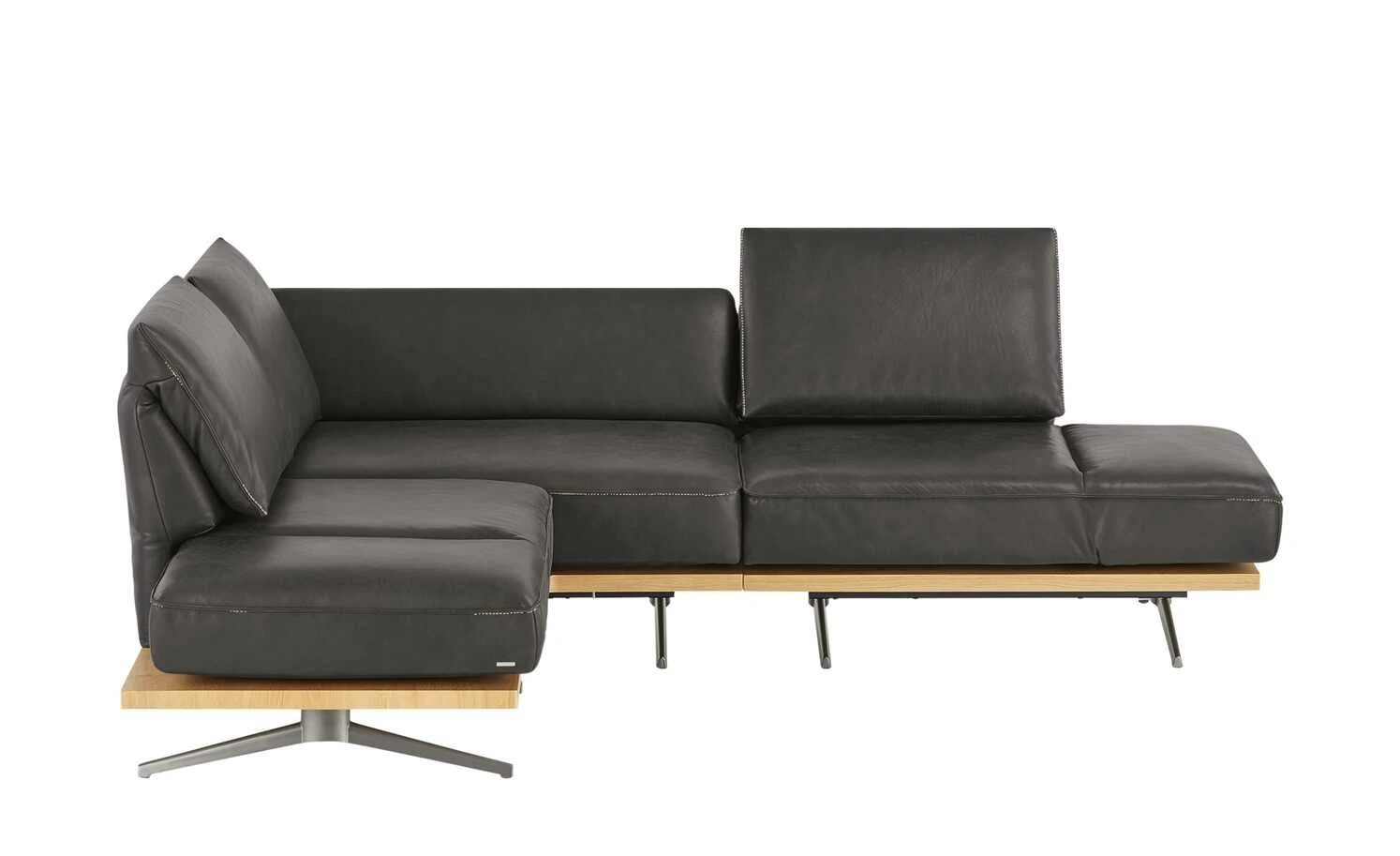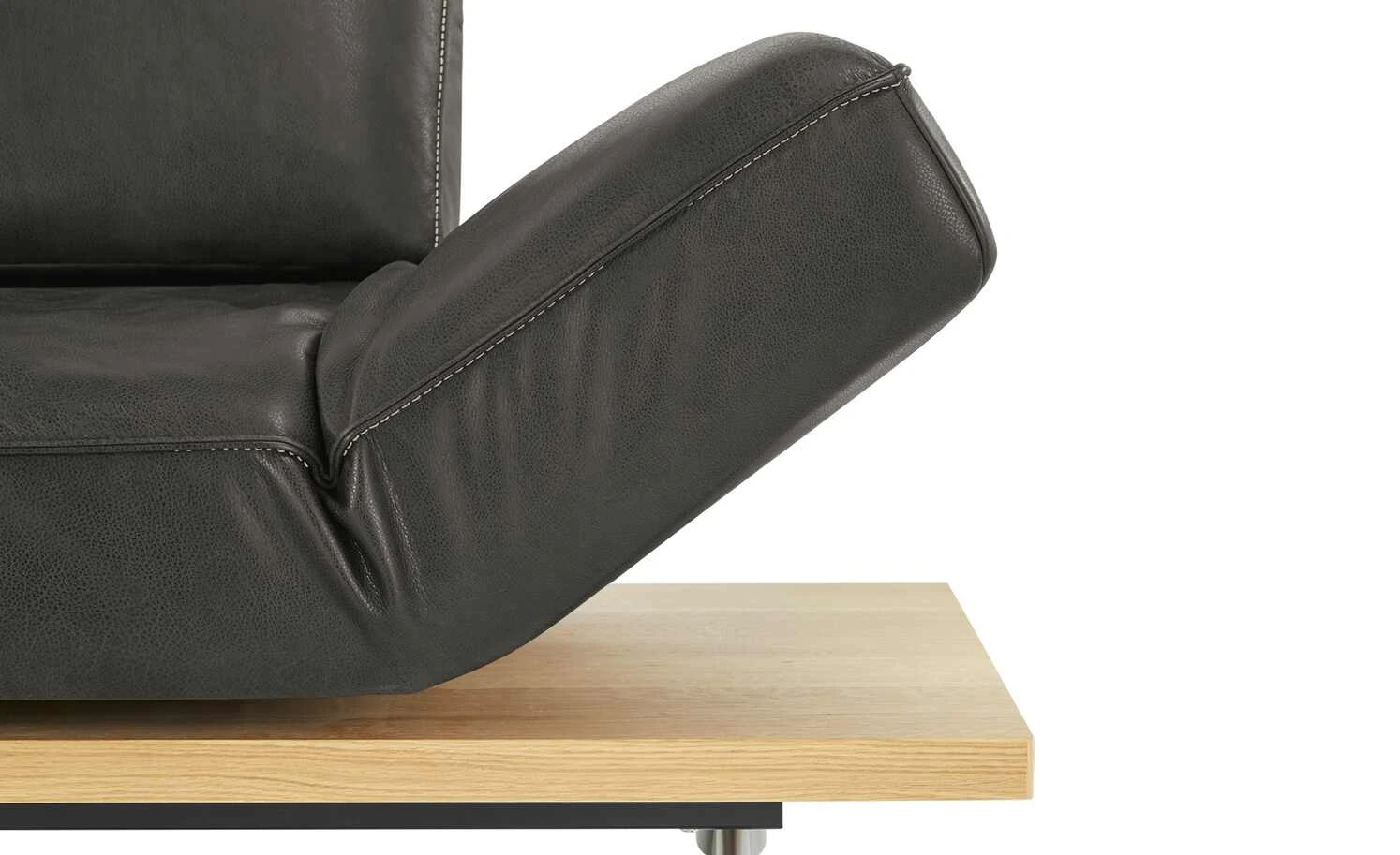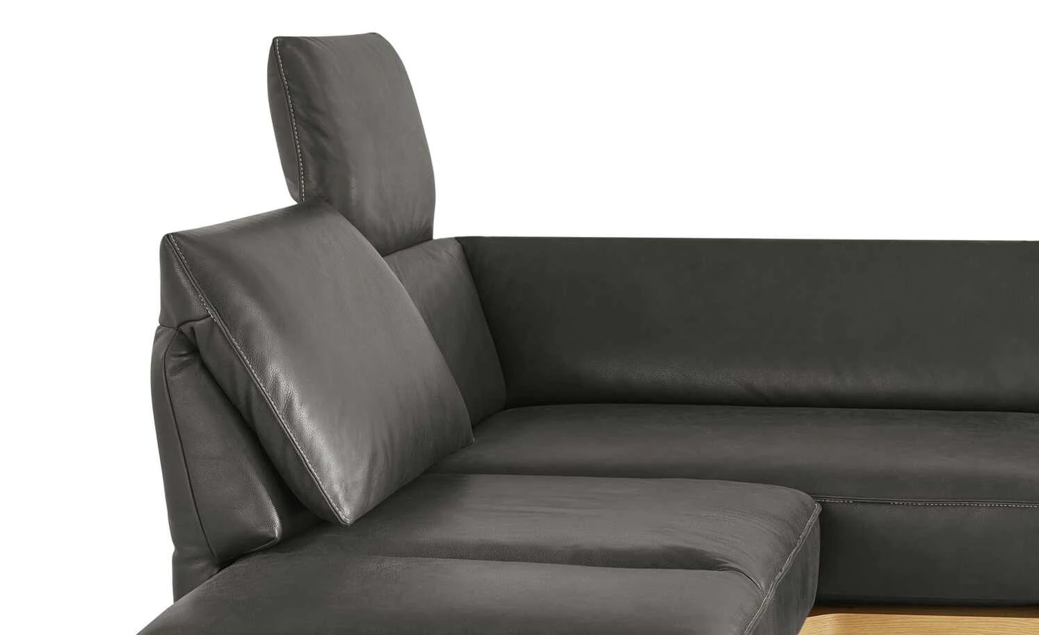 Beim Ecksofa Phoenix vereinigen sich ausgeklügelte Funktionen und exklusives Design. Dieses Zusammenspiel und liebevolle Details machen das Ecksofa Phoenix zu einem absoluten Lieblingsmöbelstück. Weiches Anilinleder zeigt die Original-Beschaffenheit der Haut. Eine dekorative Kontrastnaht setzt attraktive Akzente. Die handgearbeiteten Polster liegen auf einem Massivholz-Plateau aus Wildeiche auf. Bronzierte Schwertkufen tragen das Plateau und scheinen das Sofa schweben zu lassen. Klappen Sie die Kopfteile und die Armlehnen ganz einfach um: Phoenix passt sich Ihren Bedürfnissen ganz individuell an.