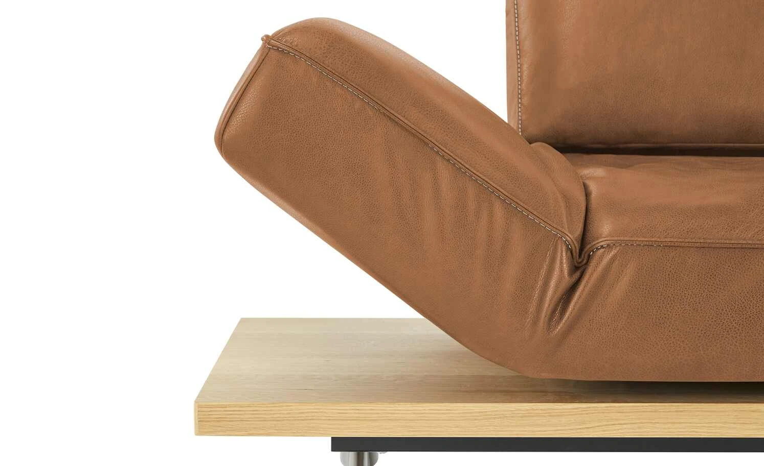 Beim Ecksofa Phoenix vereinigen sich ausgeklügelte Funktionen und exklusives Design. Dieses Zusammenspiel und liebevolle Details machen das Ecksofa Phoenix zu einem absoluten Lieblingsmöbelstück. Weiches Anilinleder zeigt die Original-Beschaffenheit der Haut. Eine dekorative Kontrastnaht setzt attraktive Akzente. Die handgearbeiteten Polster liegen auf einem Massivholz-Plateau aus Wildeiche auf. Bronzierte Schwertkufen tragen das Plateau und scheinen das Sofa schweben zu lassen. Klappen Sie die Kopfteile und die Armlehnen ganz einfach um: Phoenix passt sich Ihren Bedürfnissen ganz individuell an.