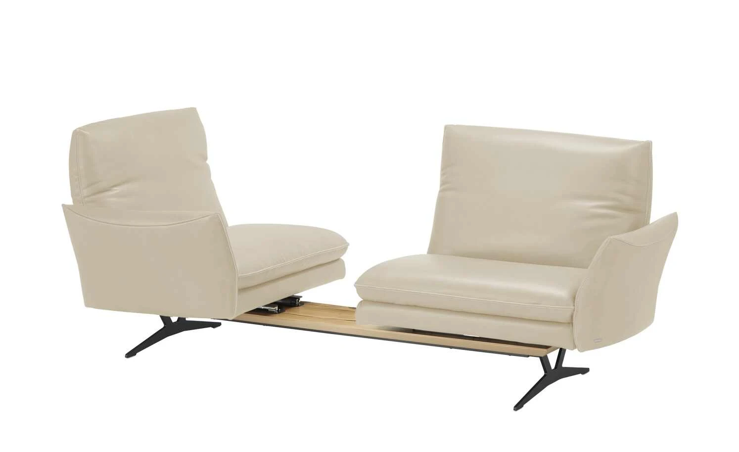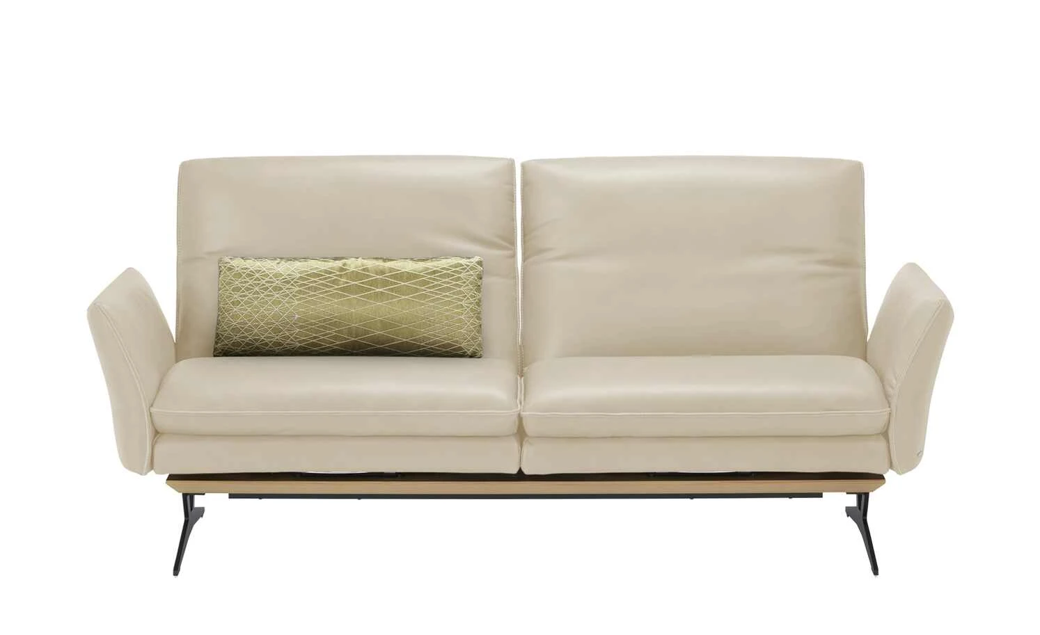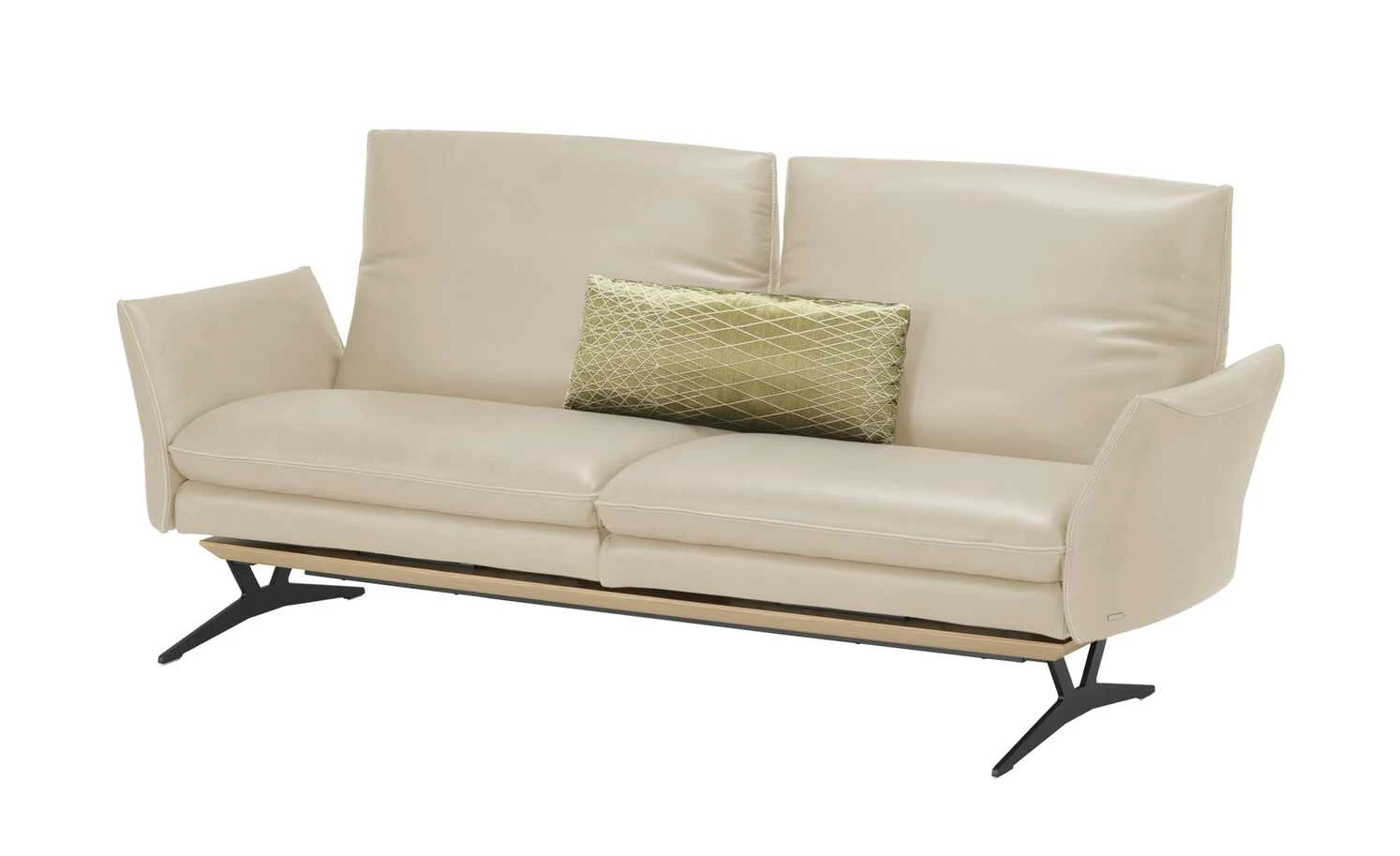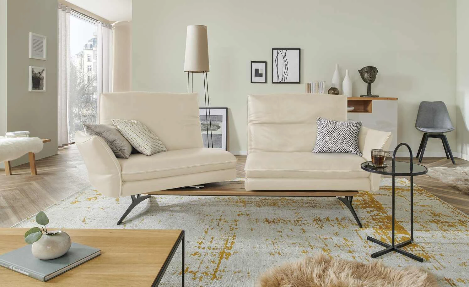 Das Markensofa Mikkl Move verspricht ein dynamisches Sitzerlebnis, das Komfort und Funktion aufs nächste Level bringt. Beide Sitzbereiche sind separat voneinander nutzbar und warten mit einzigartigen Funktionen auf. Drehen Sie die beiden Sitze in die gewünschte Position: Mikkl Move passt sich Ihrem Raumkonzept und Lebensstil mühelos an. Verstellen Sie außerdem die Rückenlehnen, das Kopfteil und die Armlehne. Alle Funktionen sind intuitiv bedienbar und kommen ohne störende Knöpfe und Hebel aus. Wählen Sie die Version mit erweiterter Funktion, um außerdem von der integrierten Gasdruckfeder und dem Drehstopp zu profitieren. So runden Sie Ihr Komforterlebnis optimal ab. Die beiden Funktionspolster liegen auf einem hochwertig furnierten Plateau auf, das mit liebevollen Details versehen ist. Getragen wird das Sofa Mikkl Move von filigranen, mattschwarzen Metall-Kufenfüßen. Dadurch verbindet es loftige Eleganz mit zeitgemäßem Design. Den hochwertigen Echtlederbezug gibt es in zahlreichen modernen Farben. Unikate gefertigt in Bayern: Die Marke KOINOR steht für einzigartige Komfortfunktionen und individuelles Design. Unter Verwendung hochwertigster Materialien entstehen Möbel mit Vorzeigecharakter.
