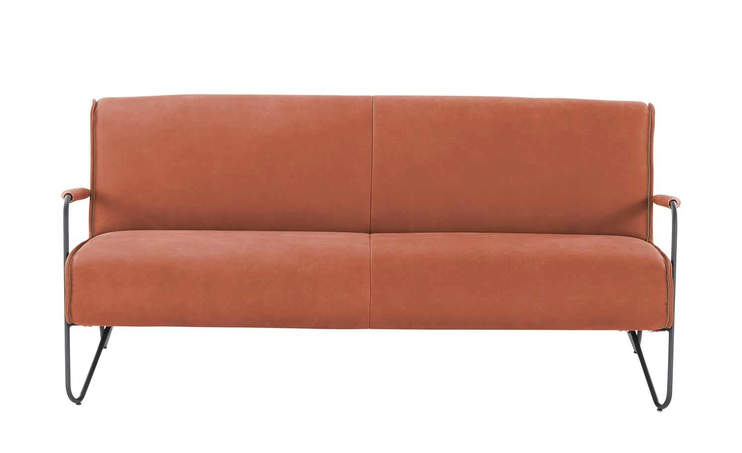Modern oder doch Retro? Das Ledersofa Gomera von KOINOR ist in beiden Welten zuhause. Geschwungene, schwarze Metallfüße tragen das Designersofa und bilden außerdem zwei Armlehnen. Das dunkle Metall gibt dem Sofa einen loftigen Touch und harmoniert mit dem hochwertigen Echtlederbezug. Dieser ist mit einer attraktiven Kontrastnaht versehen und umspannt das gesamte Sofa. Ergänzen Sie das Ledersofa mit praktischem Zubehör, wie dem gleichnamigen Armteilkissen oder der Nackenstütze Gomera. So geben Sie dem Sofa einen individuellen Look, der Ihrem Komfortstandard entspricht. Unikate gefertigt in Bayern: Die Marke KOINOR steht für einzigartige Komfortfunktionen und individuelles Design. Unter Verwendung hochwertigster Materialien entstehen Möbel mit Vorzeigecharakter.