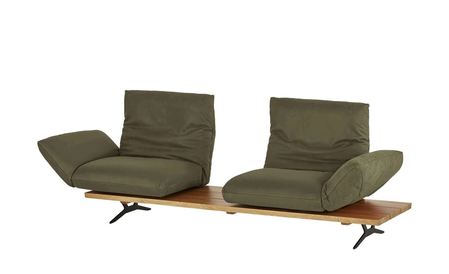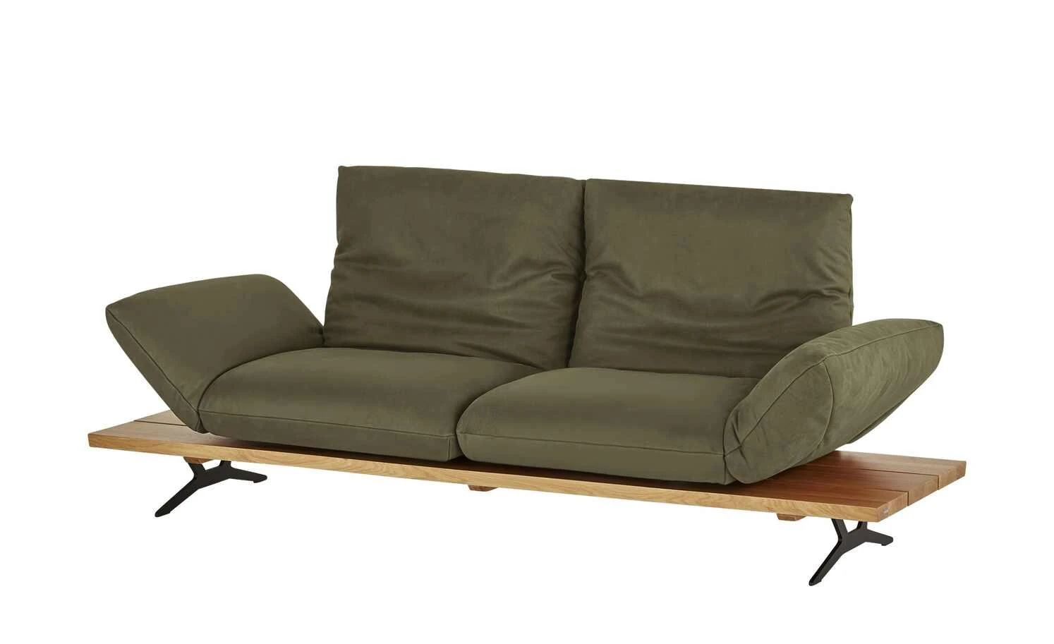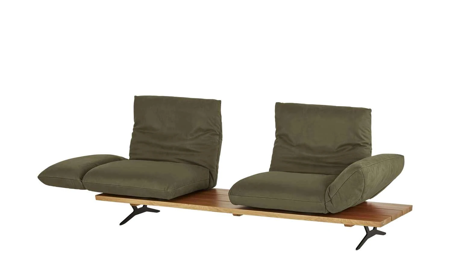 Eine faszinierende Art von Schwerelosigkeit erzeugt das Ledersofa Marilyn durch sein natürliches Holzplateau. Schmale Schwertkufen aus pulverbeschichtetem Metall tragen das massive Wildeichenholz, auf dem die multifunktionalen Polster aufliegen. Der Bezug besteht aus hochwertigem Echtleder und ist in diversen Farben erhältlich. Verstellen Sie die Kopfteile und Armlehnen ganz nach Ihren Wünschen. Die ausgeklügelte Dreh- und Schiebefunktion ermöglicht individuelle Sitzpositionen. Die einzelnen Sitzflächen können Sie ganz einfach auseinander ziehen, wodurch drei separate Sitzgelegenheiten entstehen. Wie für Möbel der Marke KOINOR üblich, sind sämtliche Hebel und Griffe direkt im Sofa integriert, damit die Optik nicht gestört wird. Unikate gefertigt in Bayern: Die Marke KOINOR steht für einzigartige Komfortfunktionen und individuelles Design. Unter Verwendung hochwertigster Materialien entstehen Möbel mit Vorzeigecharakter.