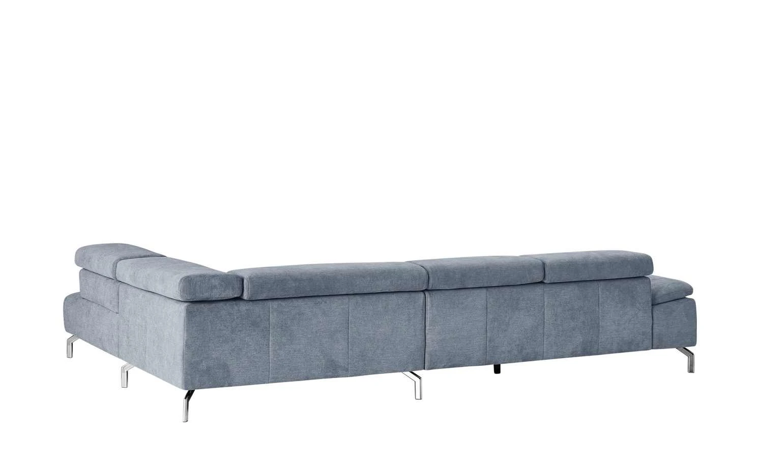 Cooles Design und Sitzkomfort machen das Ecksofa Lagoon zum Highlight des Wohnraumes. Sitzbereich, Rücken- und Armlehne sind mit hochwertigem Kaltschaum gepolstert. Der Sitzbereich wird zusätzlich durch eine Wellenunterfederung unterstützt. Verstellen Sie die Kopfteile in die gewünschte Position. So haben Sie die Möglichkeit auch mal den Kopf anzulegen, wenn Sie möchten. Perfekt, um es sich so richtig gemütlich zu machen. Lagoon ist mit einem attraktiven Webstoff bezogen. Dabei wurde auch die gesamte Rückseite bedacht, damit Sie die Couch mitten ins Zimmer stellen können. Der gesamte Sitzbereich ist quadratisch gesteppt. Zusätzliche Akzente werden durch die verchromten Füße gesetzt.