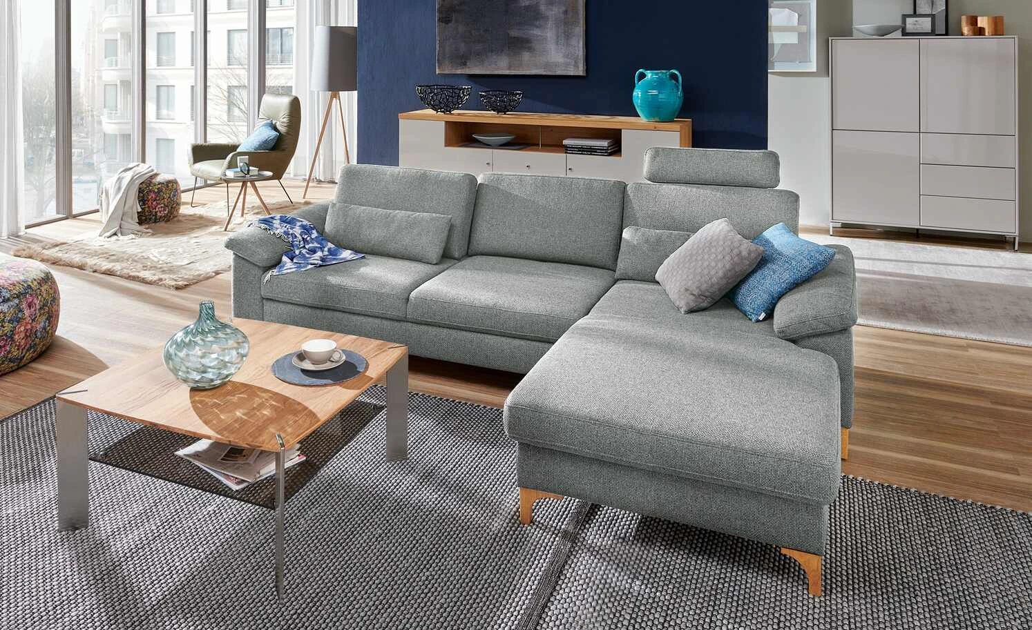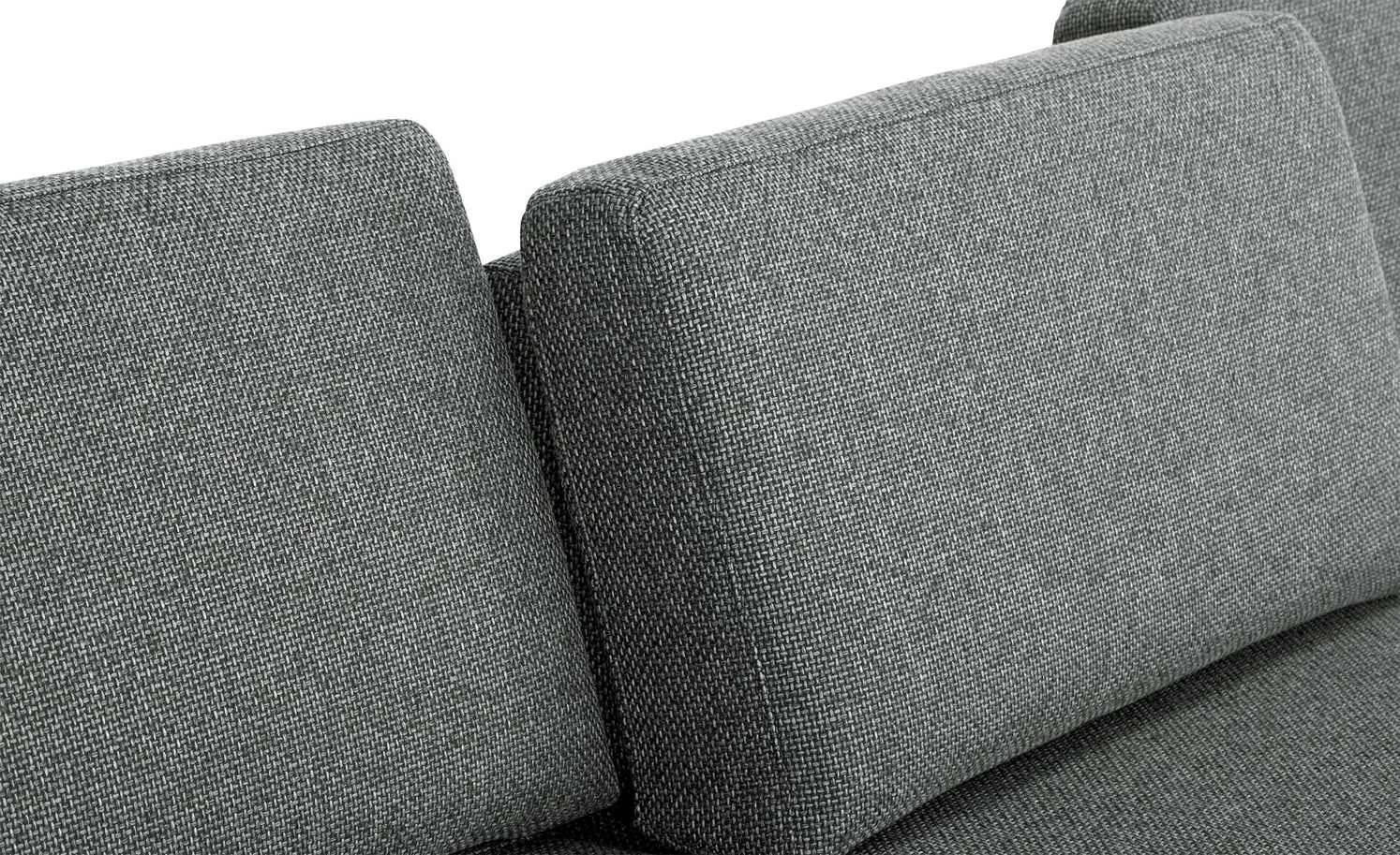 Maximum Move – dieser Name ist Programm: Beim Ecksofa von Max Schelling können Sie die Rückenlehnen aller Sitze bewegen. Dadurch verstellen Sie die Sitztiefe der Sitze individuell. Maximum Move ist mit hochwertigem Kaltschaum gepolstert und mit einer Wellenunterfederung ausgestattet. Dank der L-Form können Sie bequem die Beine hochlegen. Die gesamte Couch ist mit einem melierten Flachgewebe bezogen – einschließlich der Rückseite. So kann das Sofa gerne mittig im Wohnraum stehen.