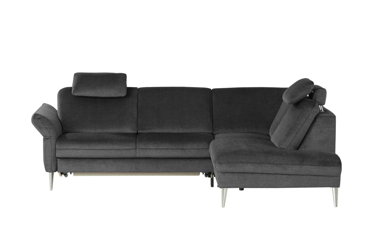 Das Ecksofa Helen verschafft Ihnen ein hohes Maß an Gemütlichkeit. In meinSofa-Markenqualität steht das Sofa für einzigartigen Sitzkomfort und geschmackvolles Design. Die manuelle Armteilverstellung und die Kopfteilverstellung verwandeln das Sofa in Ihr neues Lieblingsmöbel. Der Bezug der Sitz- und Rückenfläche ist aus Mikrofaser gefertigt und vermittelt damit ein ansprechendes Erscheinungsbild. Das Sofa lädt auch dank der Wellenfederkerne sowie der komfortablen Polsterung aus Kaltschaum zum Wohlfühlen ein. Die aluminiumfarbenen Füße aus Metall können sich sehen lassen. Das Modell Helen wird mit der praktischen Bettfunktion zu einem komfortablen Gästebett und nimmt insgesamt 83 × 249 cm ein. Es wird durch die Sitztiefe von 54 cm zu einer wahren Oase der Erholung und weist eine Sitzhöhe von 46 cm auf. Dieses Sofa wertet jedes Zuhause auf geschmackvolle und zweckmäßige Art und Weise auf.