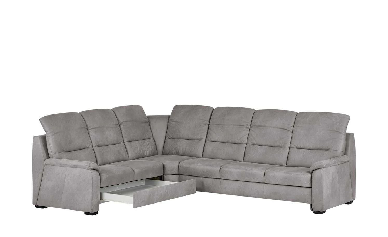 Zeitlos elegant und komfortabel – das ist das Ecksofa Vera von meinSofa. Es ist mit einem hochwertigen Federkern ausgestattet, der langlebigen Sitzkomfort bietet. Darüber hinaus ist Vera mit Schaumstoff gepolstert. Eine Wellenunterfederung soll vorschnelles Durchsitzen verhindern. Die Kopfteile der Sitze können nach Bedarf verstellt werden. Ein weiteres Highlight: der sogenannte Relaxrücken. Dabei lässt sich der Rücken einer der Sitze manuell nach hinten klappen, damit Sie sich entspannt zurücklehnen können. Dank der Schlaffunktion wird Vera zum Gästebett. Kissen, Decken und Co. finden im Bettkasten Platz. Die Couch ist mit einer soften Mikrofaser bezogen.