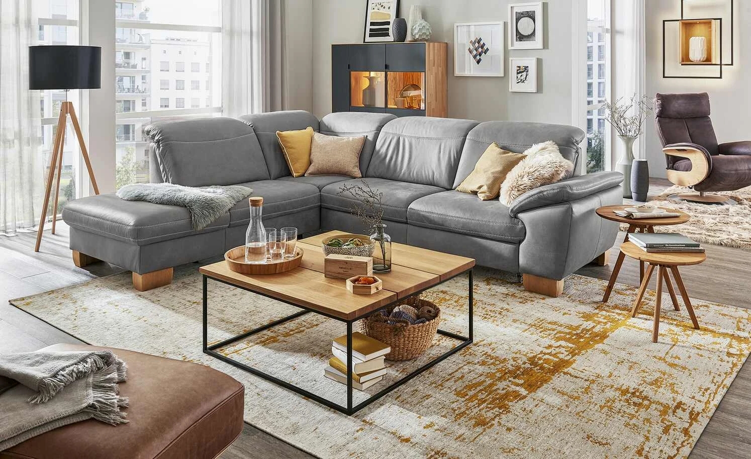 Mit hochwertigem Echtleder ist das Ecksofa Raica bezogen. Das Leder hat eine attraktive Vintage-Optik die mit beigen Kontrastnähten akzentuiert wird. Auch die Füße aus massiver Wildeiche setzen sich vom Bezug ab. Für den Komfort beim Relaxen ist Raica mit einem Federkern und einer Wellenunterfederung ausgestattet.