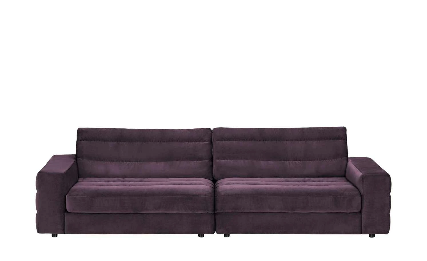 Das Big Sofa Scarlatti fällt durch seine dekorative Steppung sofort ins Auge. Die Sitzfläche, die Rückenlehne und die Außenseiten der beiden Armlehnen sind längs gesteppt und sorgen für einen modernen Look. Der samtig weiche Polyesterbezug schimmert leicht und verleiht dem Big Sofa Scarlatti einen edlen Touch. Auch die Rückseite des Sofas ist bezogen, sodass Sie Scarlatti problemlos frei im Raum platzieren können.