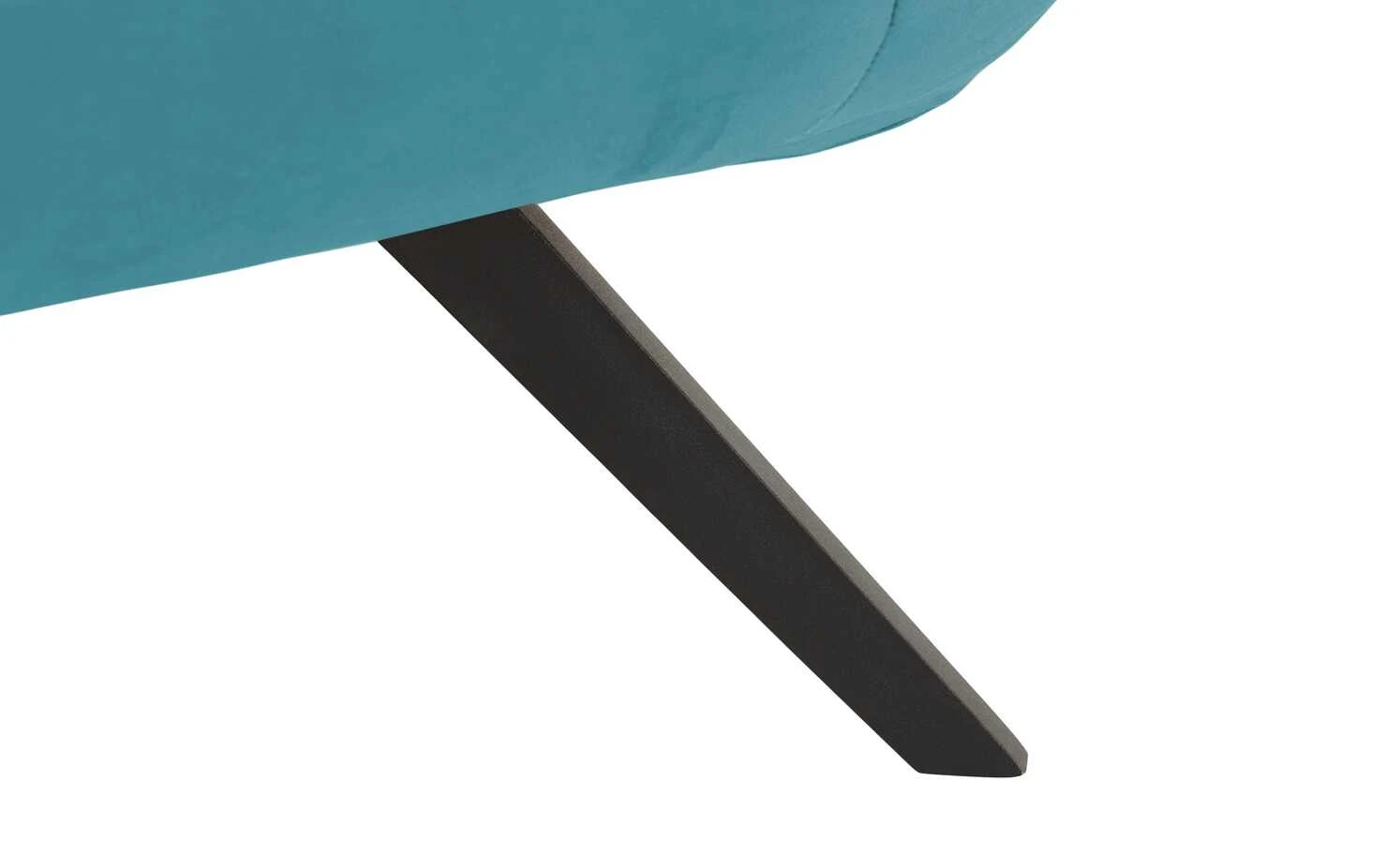 Das Ecksofa Caldara besticht durch seinen attraktiven Retro-Charme. Die hohe, gesteppte Rückenlehne besitzt Ohren wie an einem Ohrensessel und ist damit das absolute Highlight. Das Sofa inklusive seiner Armlehnen und Rückseite ist mit einem samtig weichen, leicht schimmernden Stoff bezogen. Dadurch kann das edle Sofa auch mittig im Raum platziert werden. Schmale, zierliche Füße aus schwarzem Metall tragen die großzügige Sitzfläche, auf der Sie sich auch gemütlich ausstrecken können. Übrigens: Kombinieren Sie die komfortable Eckcouch mit dem gleichnamigem Loveseat und schaffen Sie sich eine Wohlfühl-Oase zum Relaxen.