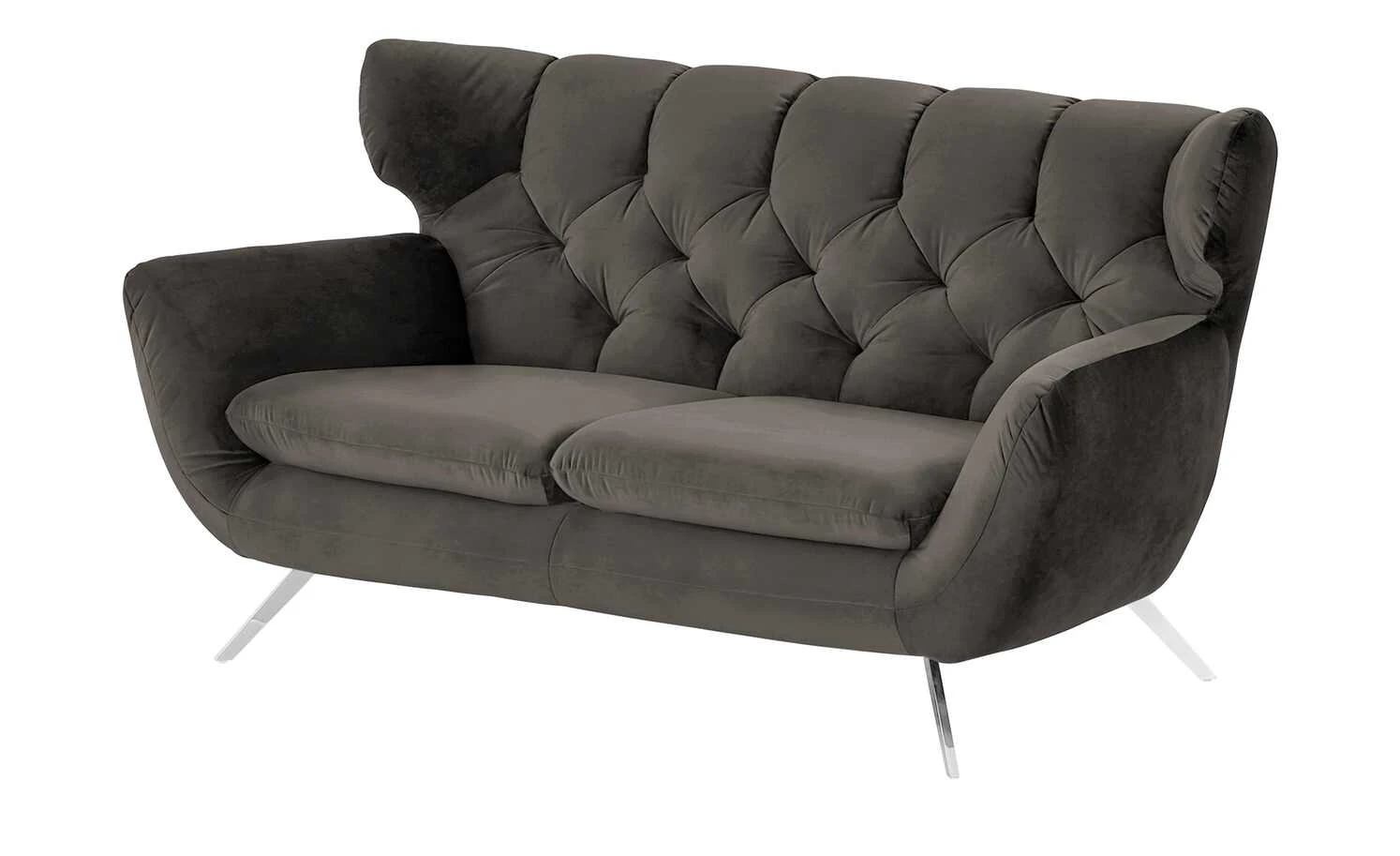 Extravagantes Design kombiniert mit hohem Sitzkomfort: Das Sofa Caldara fällt besonders durch seine hohe gesteppte Rückenlehne und den Ohren auf. Caldara ist mit hochwertigem PUR-Schaum gepolstert, der Sitzbereich wird durch eine Wellenunterfederung zusätzlich gestützt. Das verhindert ein vorzeitiges Durchsitzen. Der samtig weiche Polyesterbezug umspannt das gesamte Sofa und harmoniert mit den Metallfüßen in Chrom-Optik. Sie können Caldara daher auch problemlos mittig im Raum platzieren. Übrigens: Das Sofa gibt es in verschiedenen Varianten und kann als Sitzgruppe arrangiert werden.