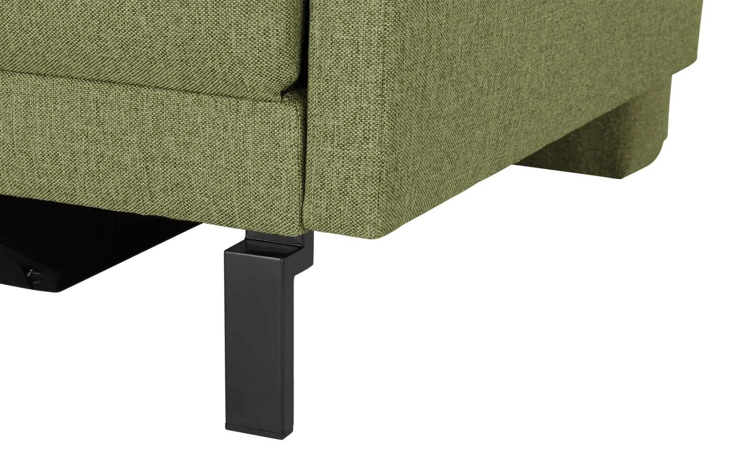 Modern und funktional zugleich: Das Schlafsofa Lüneburg. Die zwei Armlehnen des Sofas können frei gesteckt werden und passen sich Ihren Bedürfnissen an. Klappen Sie zum Beispiel die Rückenlehne um und stecken Sie die Armlehnen an das Rückenteil: Nun haben Sie eine gemütliche Position für Filme-Abende zu zweit. Platzieren Sie die Armlehnen anschließend neu, um das Schlafsofa als Bett mit Kopfteil zu verwenden. Im praktischen Bettkasten können Sie Bettwäsche für den Besuch problemlos unterbringen. Das Schlafsofa Lüneburg mit trendigen, mattschwarzen Metallfüßen gibt es in verschiedenen modernen Farben und passt daher in nahezu jeden Einrichtungsstil. Das Sofa ist komplett mit strapazierfähigem Flachgewebe bezogen und kann frei im Raum stehen.