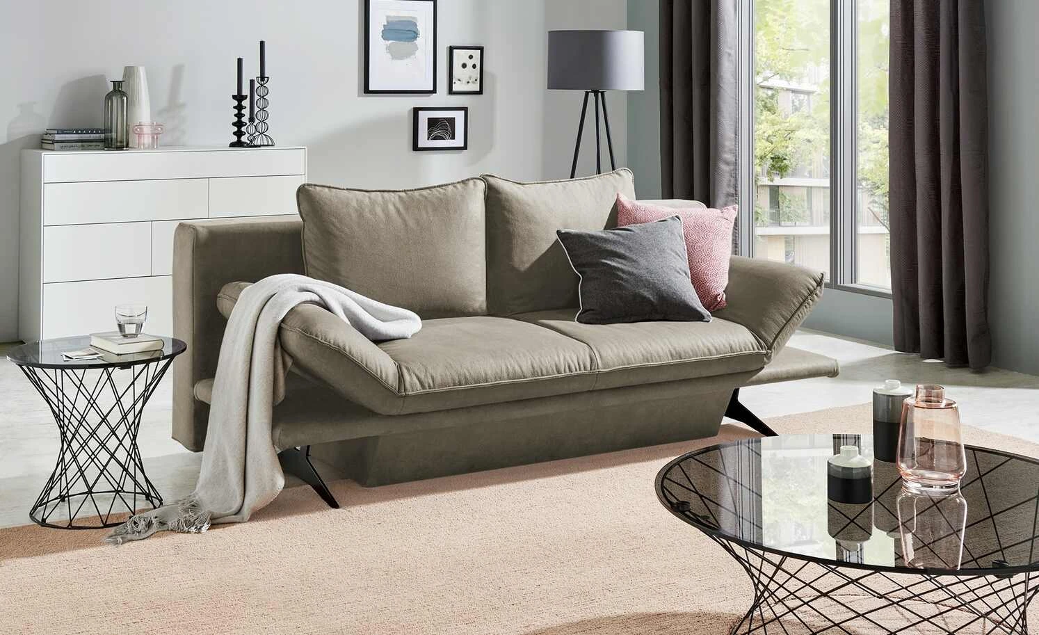 Das Sofa ist ein wahres Highlight und besticht zudem durch außergewöhnlichen Sitzkomfort. Planen Sie 90 × 211 cm als Gesamtstellmaß für das Sofa ein. Dieses Sofa wird im Nu zur reliablen Oase der Gemütlichkeit, welche Ihre vier Wände optisch wie funktional aufzuwerten weiß.