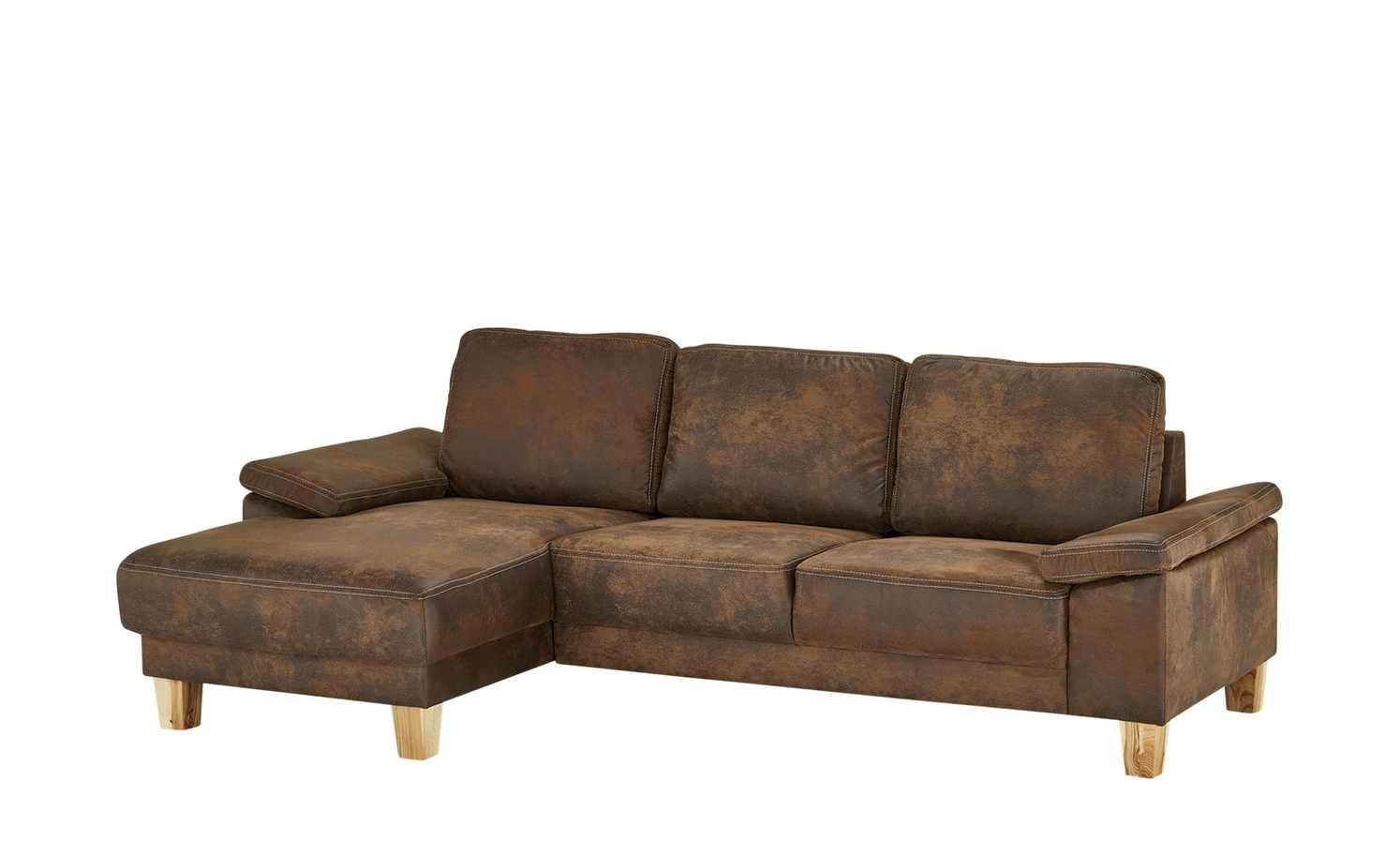 Das Ecksofa Atara fällt durch seine Raulederoptik mit Used-Effekten auf. Der Bezug besteht aus einer weichen Mikrofaser und umspannt die Couch auch auf der Rückseite. Helle Ziernähte setzen dekorative Kontrastakzente und rahmen das Sofa ein. Für einen natürlichen Touch sorgen die Füße aus massiver Esche. Atara hat eine angenehme Sitztiefe und ist zudem mit einer Ottomane ausgestattet. Sie erlaubt es Ihnen, auch mal die Beine hochzulegen. Die gemütliche Schaumstoffpolsterung wird von einer Nosag-Wellenunterfederung unterstützt, die für eine noch bessere Federung sorgt.