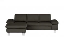 Finola ist eine gemütliche Couch in L-Form, die sich wunderbar in Ihrem Wohnzimmer machen wird. Sie ist von der Marke smart und hat eine stabile, langlebige Qualität. Für den Komfort sorgt eine Polsterung mit formstabilem Polyätherschaum. Eine zusätzliche Nosag-Wellenunterfederung im Sitzbereich verbessert die Abfederung und soll zudem vorschnelles Durchsitzen verhindern. Die beiden Armlehnen können in der Position verstellt werden. Finola ist mit einem hochwertigen, weichen Echtleder bezogen, auch auf der gesamten Rückseite. Sie haben deshalb die Möglichkeit, das Sofa auch mittig im Wohnzimmer zu platzieren, nicht nur direkt vor einer Wand. Modern designte Alufüße mit einer polierten Oberfläche setzen hochglänzende Akzente.