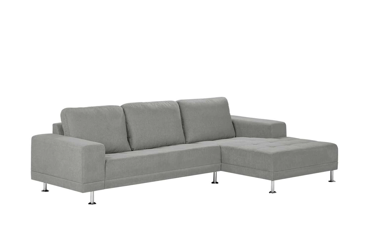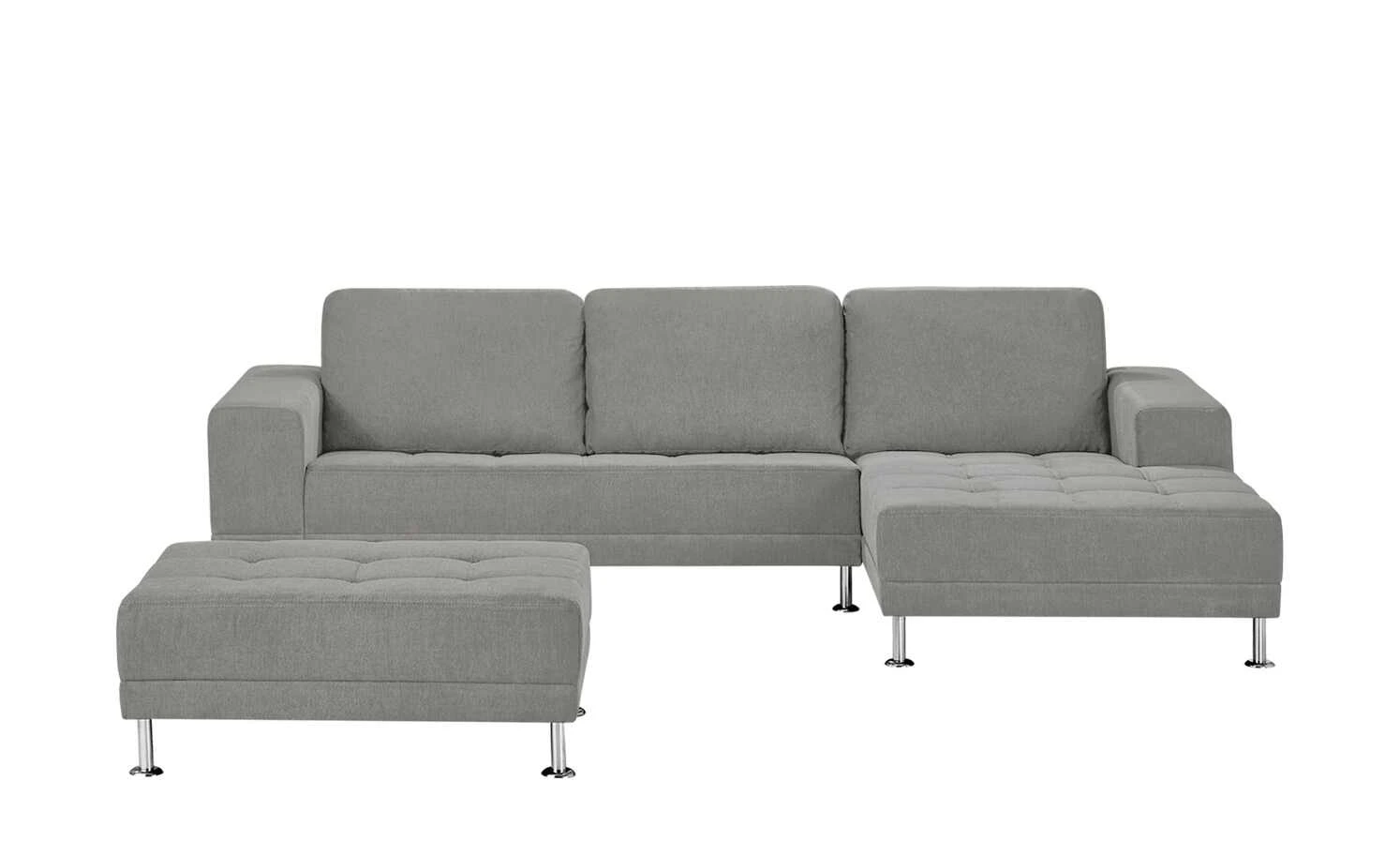 Verbringen Sie den nächsten Heimkinoabend auf dem Ecksofa Garda. Die Couch in L-Form ist mit Schaumstoff und einer Nosag-Wellenunterfederung gepolstert und bietet Ihnen damit einen hohen Sitzkomfort. Der Bezug besteht aus einem robusten Webstoff, der sich angenehm anfasst. Da der Original-Bezug auch auf der Rückseite der Couch zu finden ist, ergeben sich völlig neue Wohnkonzepte. Sie können Garda eben nicht nur direkt vor eine Wand, sondern auch mitten in den Wohnraum stellen. Die Füße aus Metall sorgen für einen guten Stand – und durch die Chromoptik setzen sie moderne Akzente. Die Sitzfläche ist formschön quadratisch abgesteppt und deshalb nicht nur funktional, sondern auch optisch ansprechend.