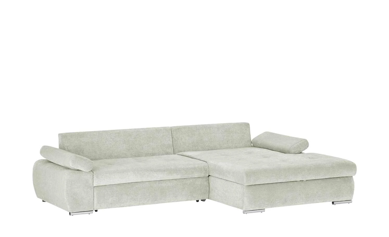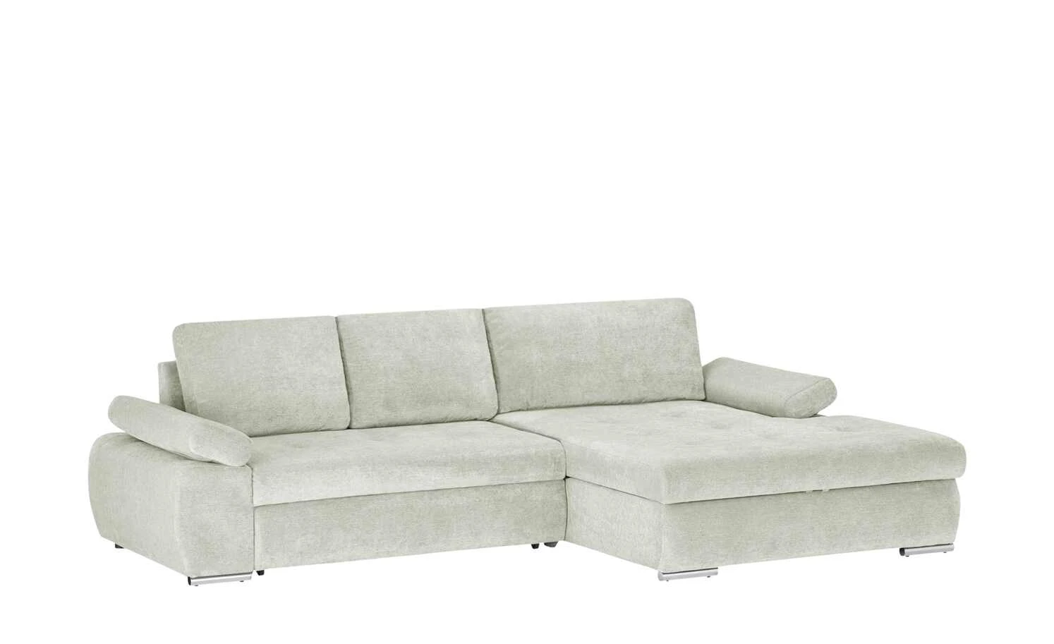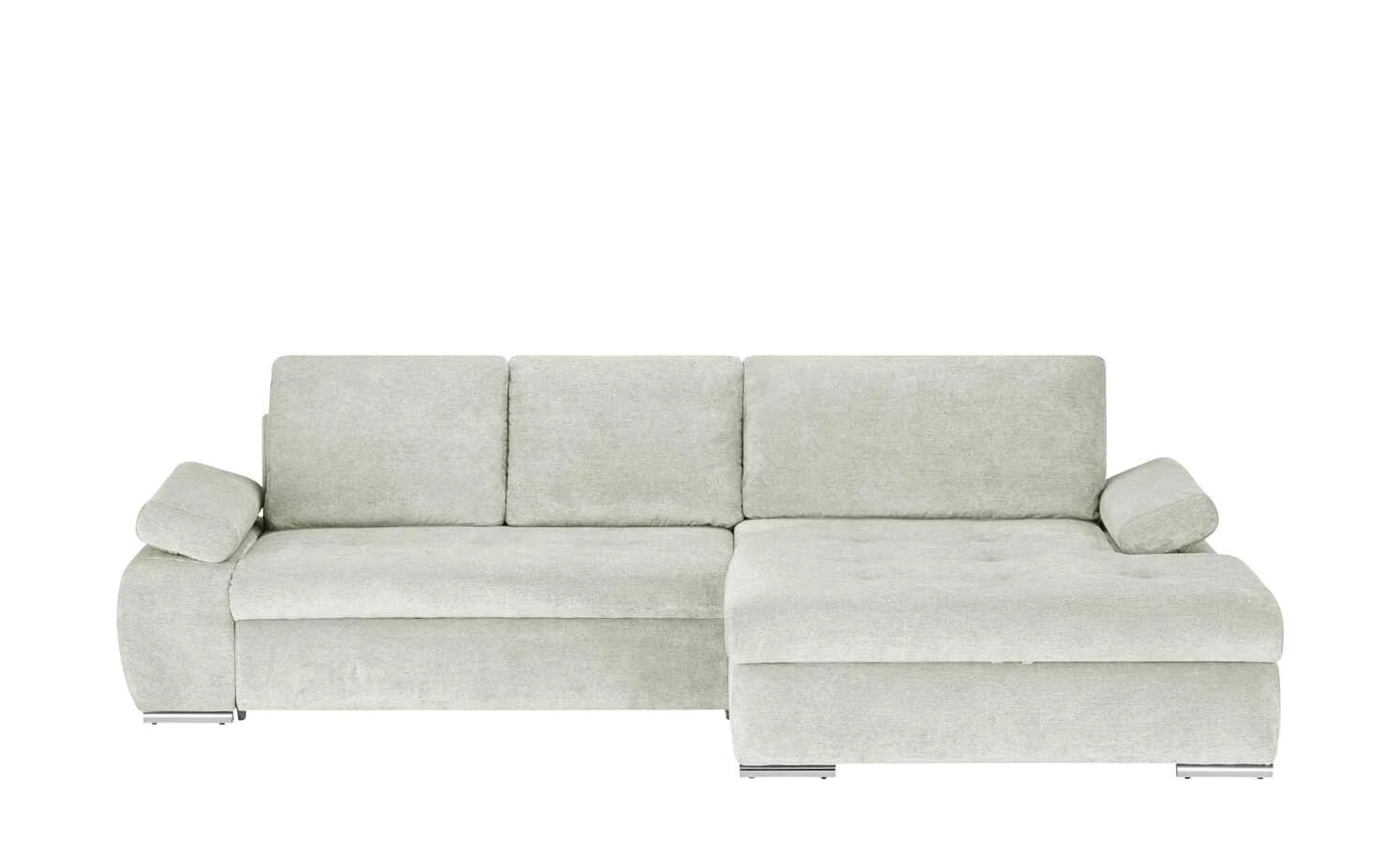 Das Ecksofa Ibby mit seiner weitläufigen L-Form bietet viel Platz zum Entspannen und Erholen. Die Sitzfläche ist mit einer Wellenunterfederung ausgestattet. Darauf befindet sich eine Polsterung aus Schaumstoff, die sich auch im Rückenbereich und den Armlehnen wiederfindet. Somit ist ein angenehmes Sitzen und Liegen gewährleistet. Für noch mehr Komfort sind drei Rückenkissen im Lieferumfang enthalten. Die Armlehnen lassen sich individuell verstellen. Ein weiteres Highlight von Ibby ist die Schlaffunktion: Ziehen Sie Ibby einfach zum Gästebett aus. Im großzügigen Bettkasten unter der Sitzfläche können Sie zum Beispiel Bettwäsche für den Besuch verstauen. Ibby ist rundum mit einem einfarbigen Stoff bezogen. So können Sie Ibby auch frei in den Wohnraum stellen. Wählen Sie aus verschiedenen strapazierfähigen Stoffbezügen und bestimmen Sie die Gestaltung Ihres Sofas ganz einfach selbst.