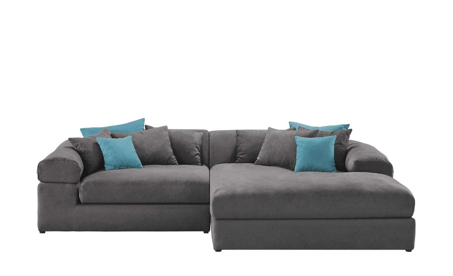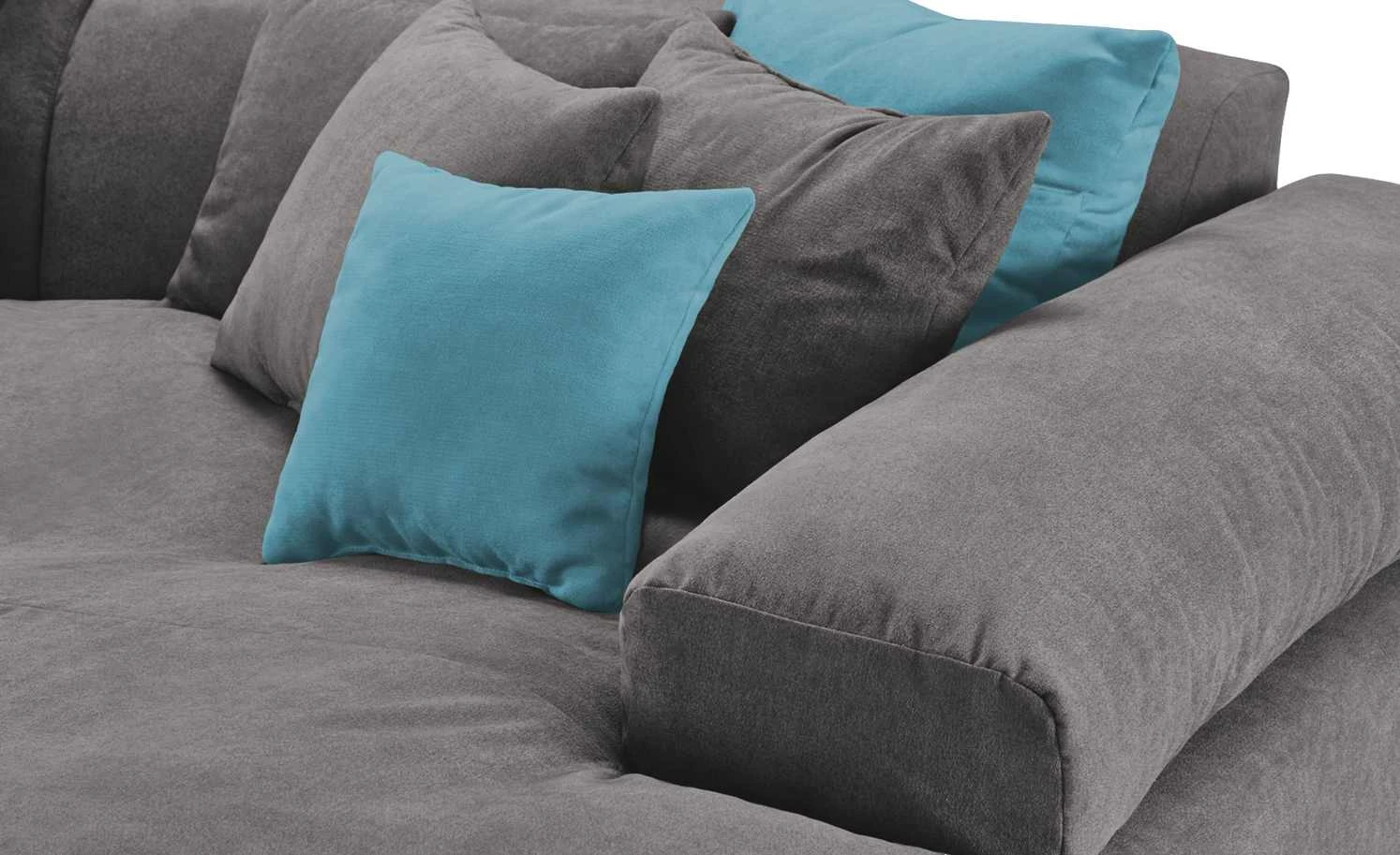 Das Ecksofa Lianea ist eine wahre Wohlfühl-Oase. Die komfortable Schaumstoffpolsterung und der weiche Stoff laden zum gemütlichen Beisammensein ein. Auch die Rückseite des Sofas ist bezogen: Lianea kann daher auch mittig im Raum platziert werden. Besonders gemütlich wird es mit den zwölf Kissen, die im Lieferumfang enthalten sind. Das Ecksofa gibt es in zahlreichen Farbvarianten und passt daher in nahezu jedes Wohnzimmer.