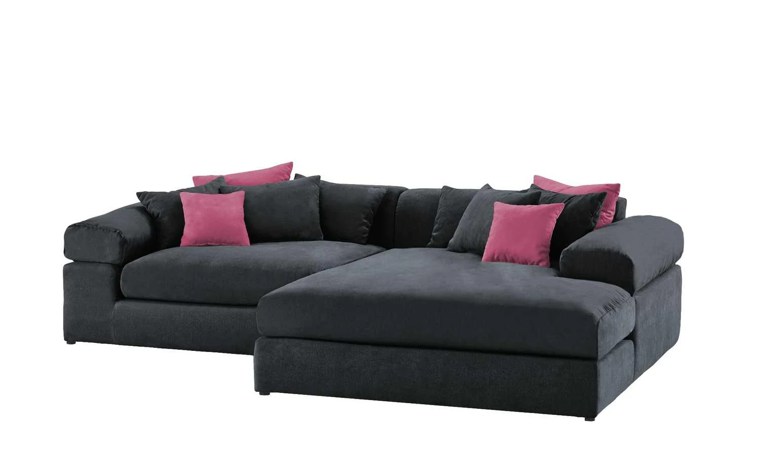 Das Ecksofa Lianea ist eine wahre Wohlfühl-Oase. Die komfortable Schaumstoffpolsterung und der weiche Stoff laden zum gemütlichen Beisammensein ein. Auch die Rückseite des Sofas ist bezogen: Lianea kann daher auch mittig im Raum platziert werden. Besonders gemütlich wird es mit den zwölf Kissen, die im Lieferumfang enthalten sind. Das Ecksofa gibt es in zahlreichen Farbvarianten und passt daher in nahezu jedes Wohnzimmer.