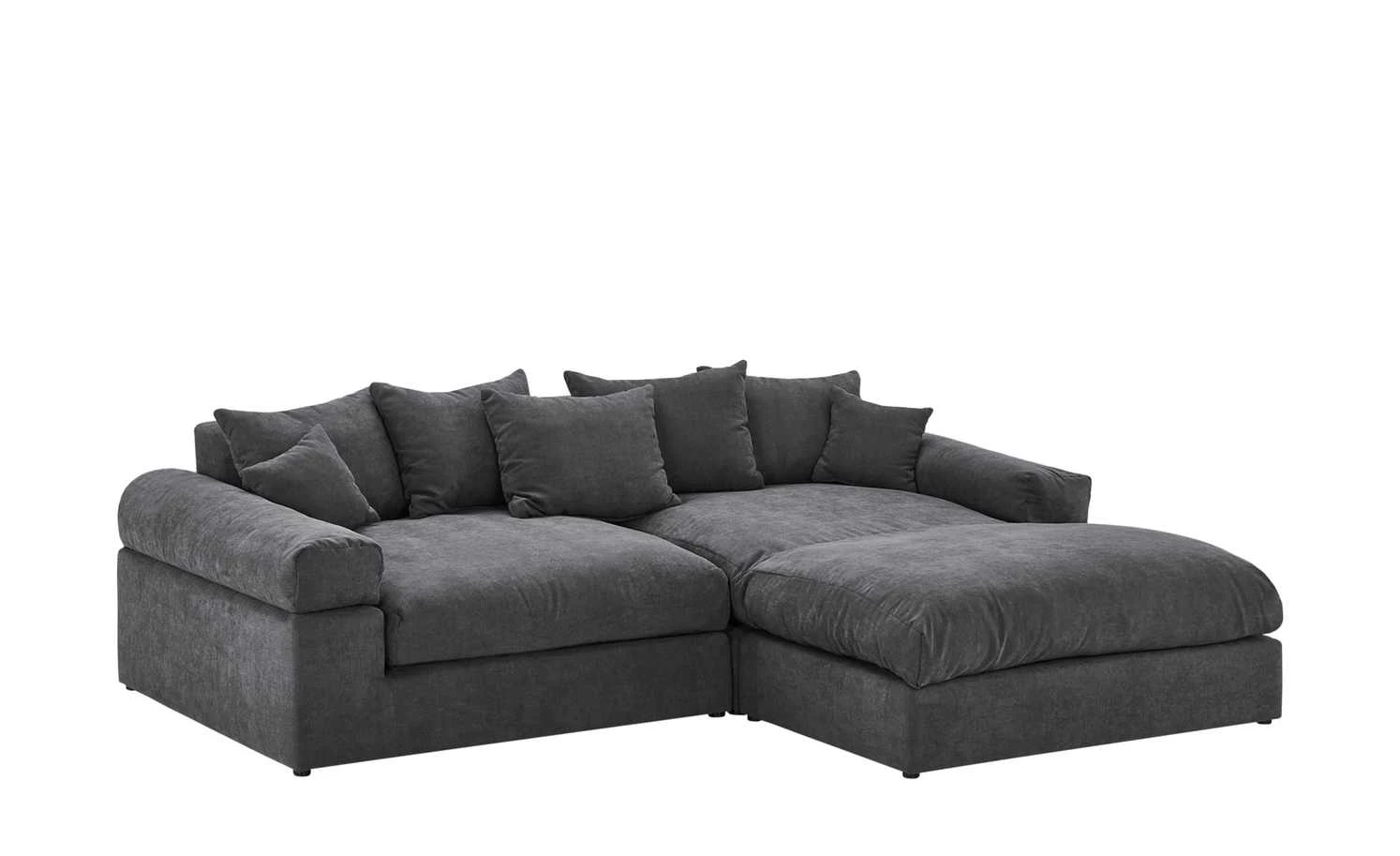 Das Ecksofa Lionore von smart strahlt Gemütlichkeit aus und bietet selbstverständlich auch ein gemütliches Sitzgefühl. Das kommt in erster Linie von der dicken, komfortablen Polsterung des Sofas. Lionore ist L-förmig designt und bietet Ihnen deshalb die Möglichkeit auch mal die Beine hochzulegen. Die extra tiefe Sitztiefe von 79 bzw. 102 Zentimetern bei der Ottomane unterstützt das bequeme Sitzerlebnis. Durch die insgesamt sieben Kissen in unterschiedlicher Größe können Sie die Tiefe der Sitze individuell regulieren. Die Couch ist komplett mit einem weichen Flachgewebe bezogen. Das gibt Ihnen die Möglichkeit, Lionore auch mittig in den Raum zu stellen.