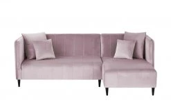 Edel und komfortabel zugleich: Das Ecksofa Sara fällt durch seinen leicht schimmernden Bezug aus samtig weicher Mikrofaser sofort auf. Der Stoff ist längs gesteppt – und das an allen Seiten. Sie können Sara daher auch problemlos mittig im Raum platzieren. Die hochwertige Schaumstoffpolsterung und die Wellenunterfederung sorgen für langanhaltenden Sitzkomfort. Vier weiche Zierkissen sind im Lieferumfang enthalten, sodass Sie es sich noch gemütlicher machen können. Schwarze Kegelfüße aus massivem Buchenholz runden den edlen Look von Sara gekonnt ab.