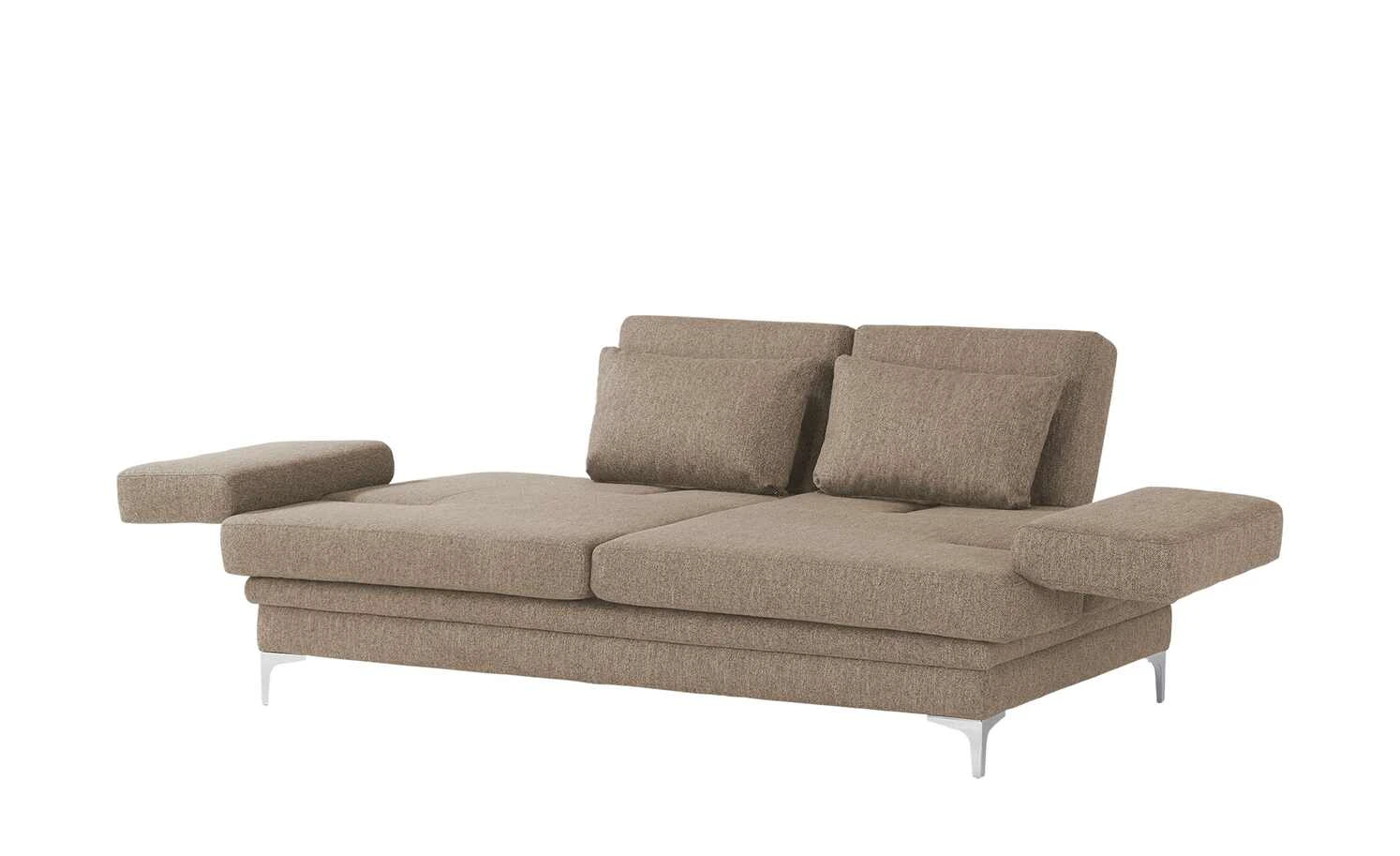 Das Sofa Alea sorgt für zusätzliche Bequemlichkeit in jedem Zuhause. Im Sofa der Marke smart vereinen sich Komfort und Qualität gekonnt. Das Sofa verfügt über eine Polsterung aus Kaltschaum für das maximale Wohlfühlerlebnis und ist mit einem echt bezogenen Rücken ausgestattet, sodass es ohne Probleme mittig im Raum aufgestellt werden kann. Der Überzug der Sitz- und Rückenfläche aus Webstoff rundet die Gesamtästhetik des Sofas perfekt ab. Das Sofa steht sicher auf hübschen chromfarbenen Füßen aus Metall. Das Modell Alea lässt sich mit der Bettfunktion schnell zu einem komfortablen Schlafsofa umbauen und dient durch einen integrierten Bettkasten als Stauraummöbel. Es nimmt insgesamt 120 × 205 cm ein und verfügt über eine Sitzhöhe von 44 cm. Dieses Sofa sorgt in Ihren vier Wänden für mehr Behaglichkeit.