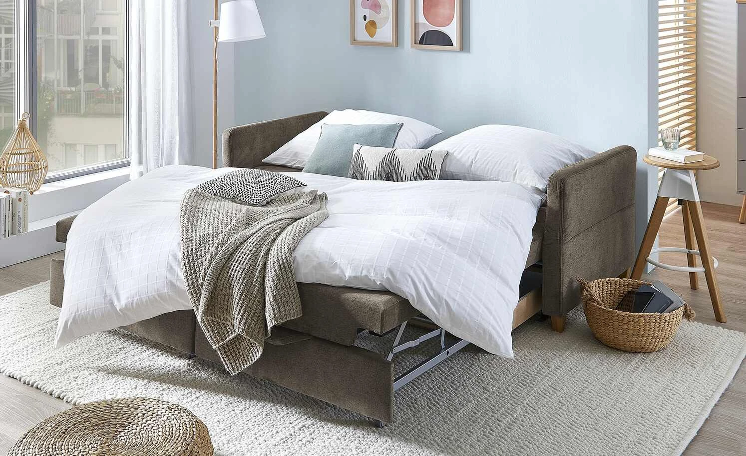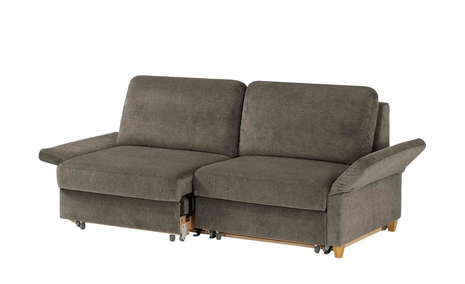 Hinsetzen, zurücklehnen und entspannen: Das Sofa Valencia Schlafsofasystem garantiert ein Mehr an Bequemlichkeit. Dank der Armteilverstellung wird das Sofa der Marke smart zu einer absoluten Oase der Entspannung. Es ist mit einem echt bezogenen Rücken ausgestattet, damit es ohne Probleme mittig im Raum platziert werden kann, und verfügt über Wellenfederkerne sowie eine Polsterung aus Kaltschaum. Die mit Mikrofaser bezogene Sitz- und Rückenfläche rundet den Gesamteindruck ideal ab. Das Modell Valencia Schlafsofasystem steht fest auf ästhetischen eichenfarbenen Füßen aus Massivholz. Das Sofa lässt sich aufgrund der Bettfunktion in ein gemütliches Gästebett umwandeln und dient mit dem integrierten Bettkasten als Stauraummöbel. Es lädt mit der Sitztiefe von 54 cm zum Relaxen ein, nimmt insgesamt 94 × 242 cm ein und weist eine Sitzhöhe von 46 cm auf. Auf diesem schönen und gleichzeitig praktischen Sofa kann man es sich nach getaner Arbeit bequem machen.