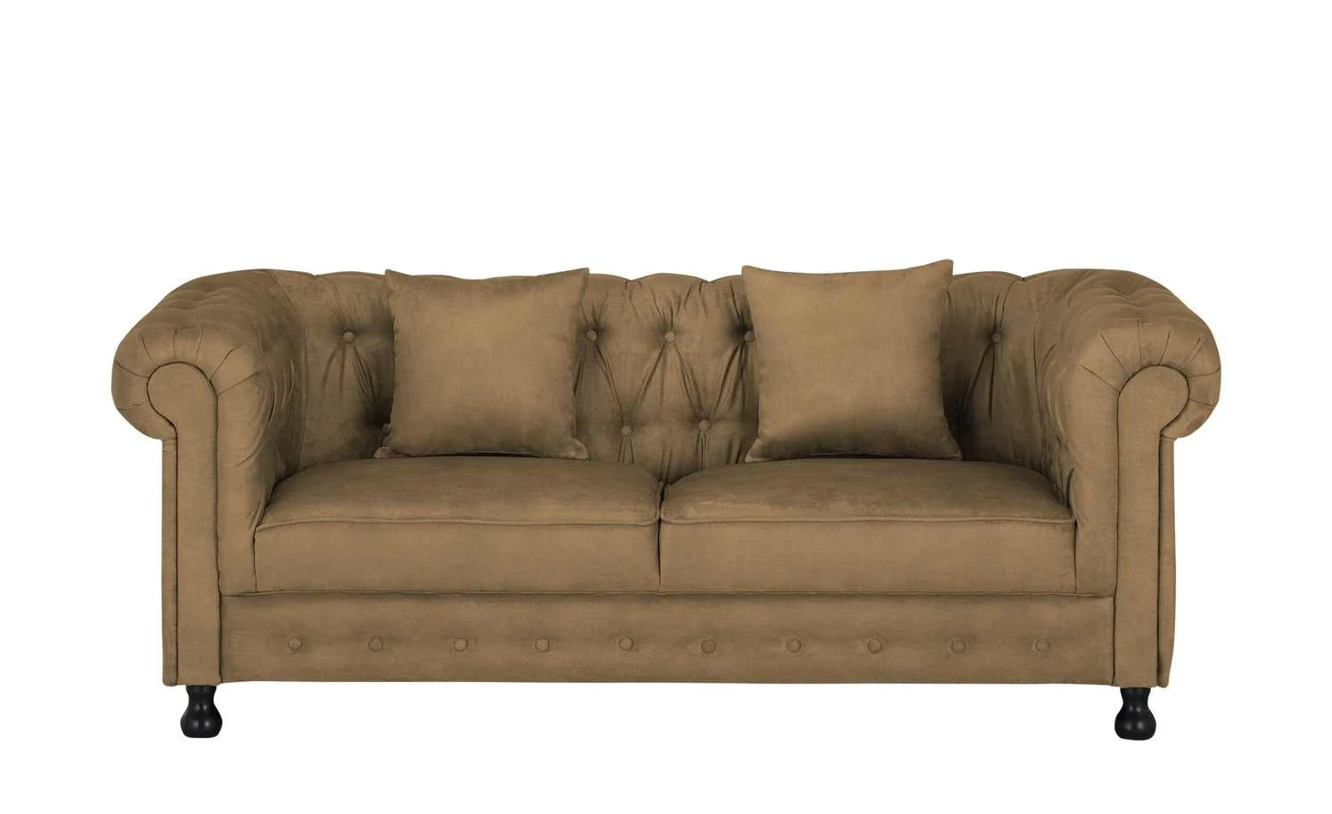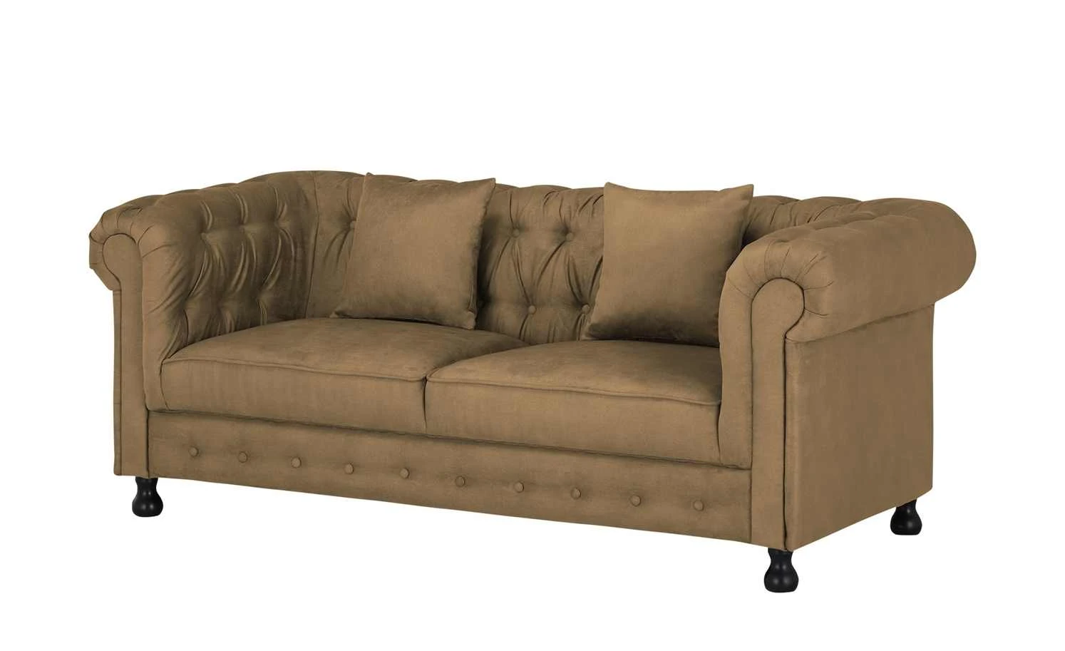 Das Sofa Chelli von smart fällt durch sein attraktives Vintage-Design auf. Mit seiner markanten Steppung und den Zierknöpfen erinnert das Sofa an den beliebten Chesterfield-Stil. Chelli ist mit einem weichen und doch pflegeleichten Mikrofaserstoff bezogen. Liebevolle Details, wie die Zierknopfleiste und die dunklen Buchenfüße machen das Sofa Chelli zu einem echten Charaktermöbel. Kombinieren Sie einen Dreisitzer mit einem Viersitzer, um eine Sitzgruppe zu kreieren, oder platzieren Sie das Sofa einzeln als zentrales Stück im Raum: Da die Rückseite ebenfalls mit dem Mikrofaserstoff bezogen ist, können Sie Chelli ganz nach Ihren Vorstellungen platzieren.